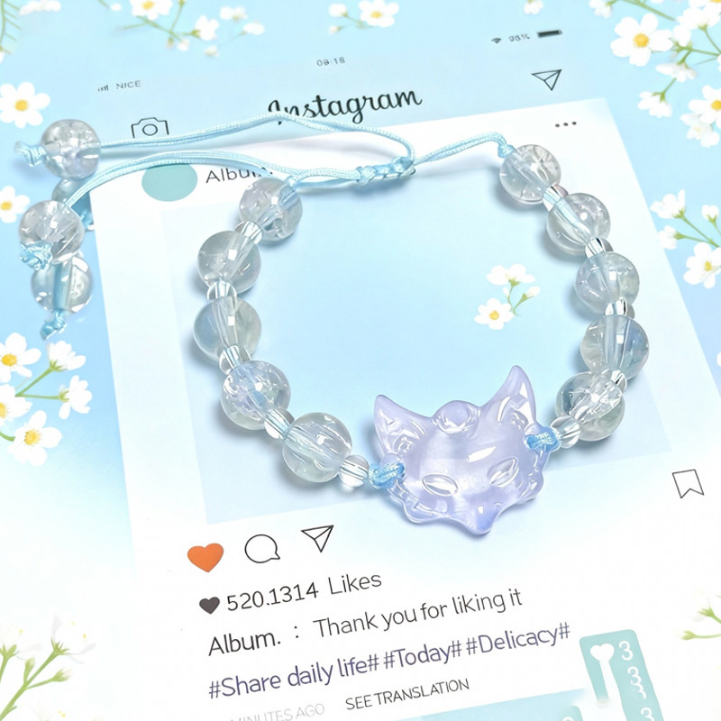 灵狐面具玻璃手链蓝精致女学生手串礼物便宜闺蜜小众儿童