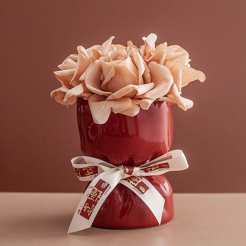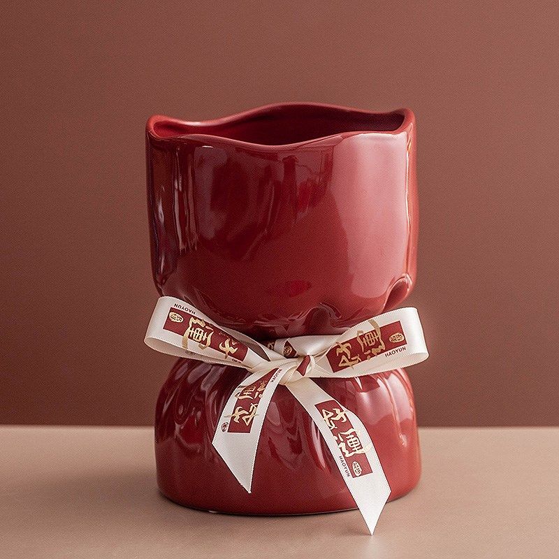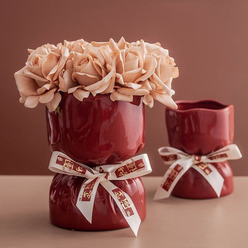 创意红色陶瓷花瓶水培植物干花鲜花插花花瓶客厅桌面玄关装饰摆件