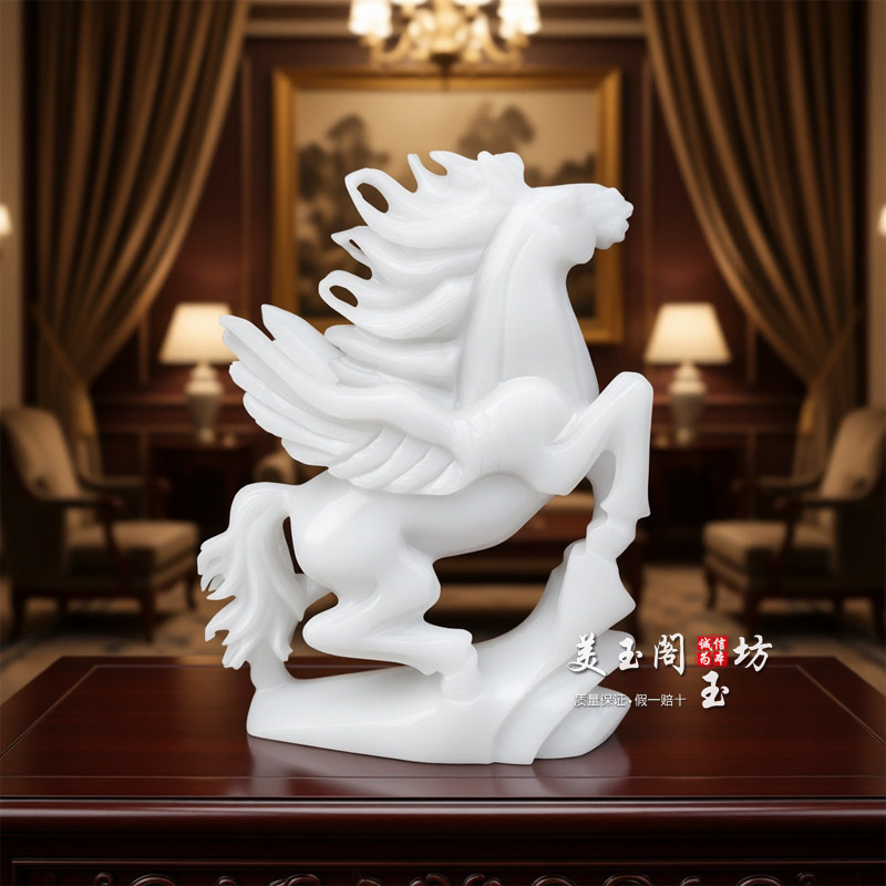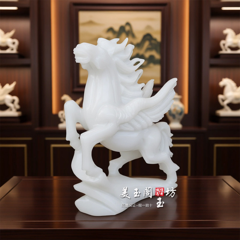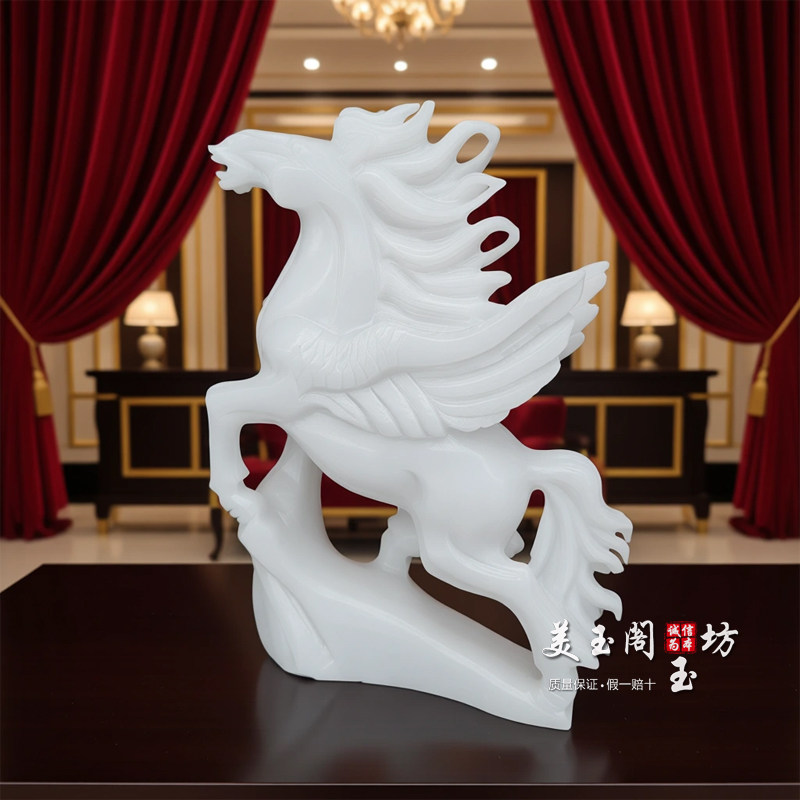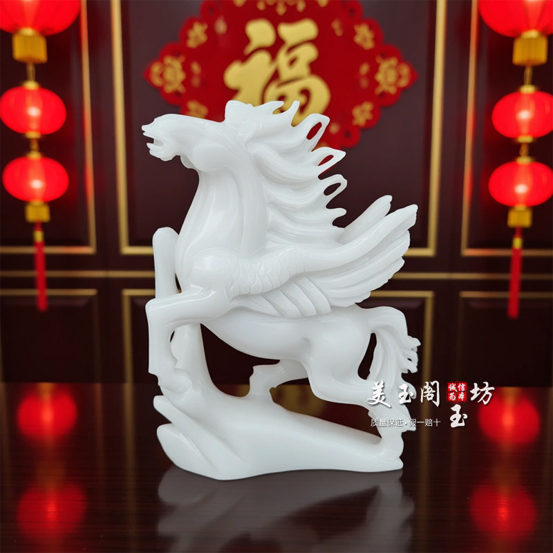 白玉飞马摆件马到成功风水生肖马玉石家居客厅办公室开业乔迁礼品