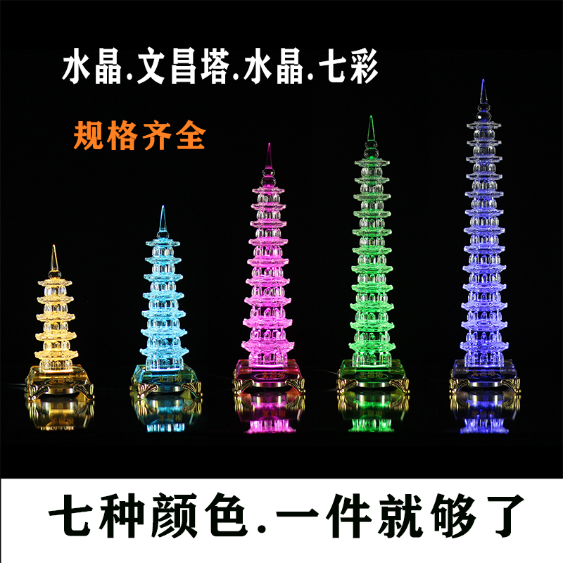 文昌塔水晶发光十三层七彩灯客厅办公室书房桌祝学摆件男女孩九层