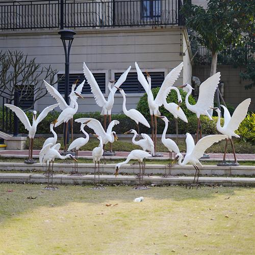 仿真白鹭雕塑户外装饰动物摆件园林水池景观玻璃钢仙鹤白鹤鸟模型