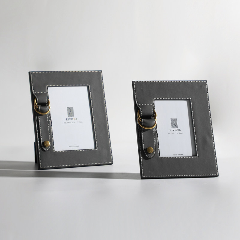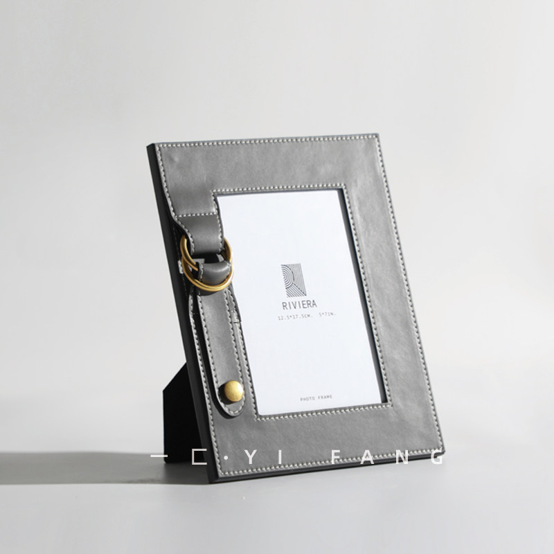 一匚 现代轻奢皮革红色灰色相框 样板间书房卧室衣帽间软装摆件