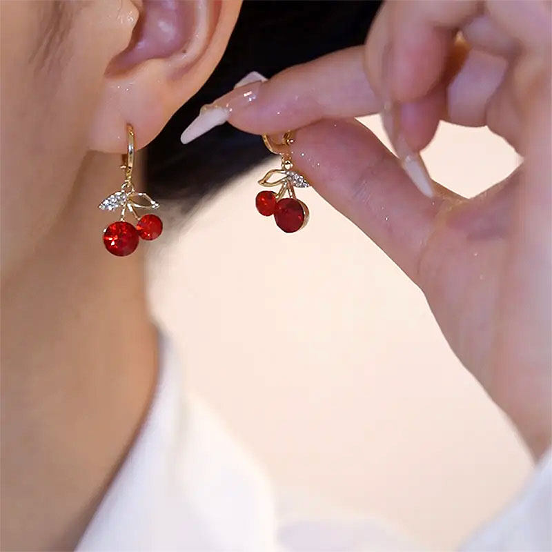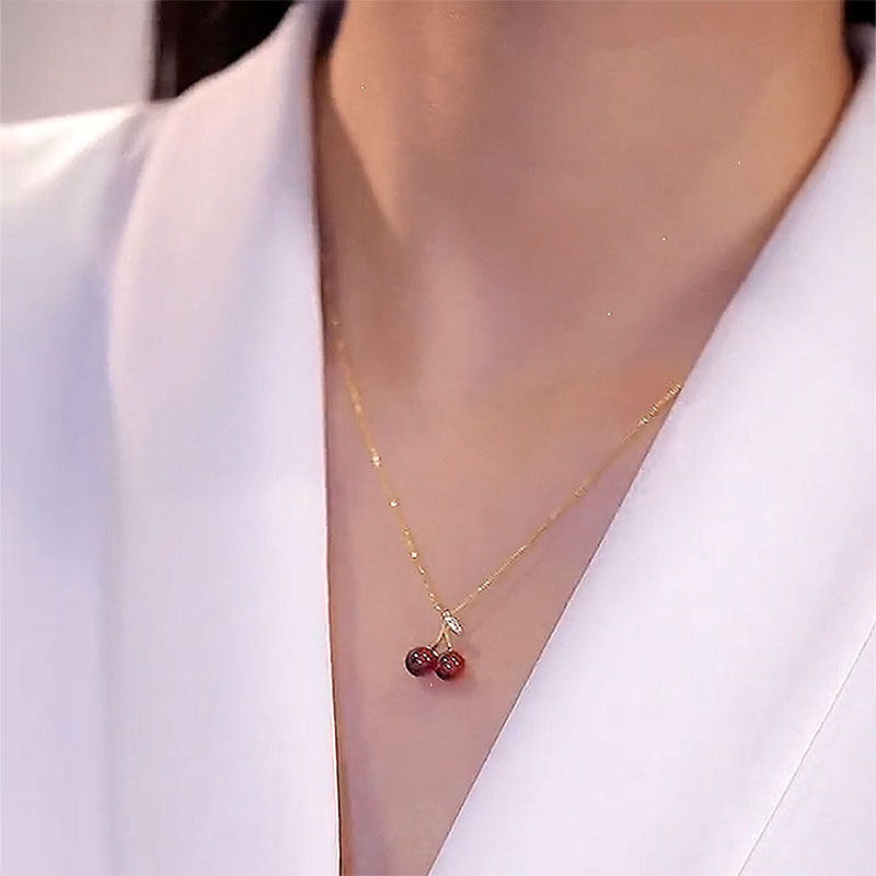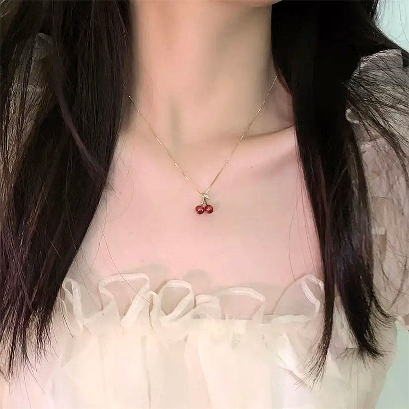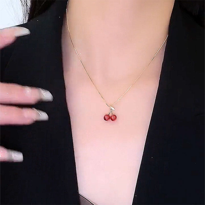 2026年新款潮气质红色樱桃项链女高级感耳环夏轻奢锁骨链颈链吊坠