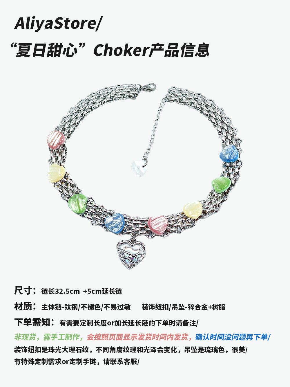AliyaStore/原创手作夏日甜心choker钛钢颈链梦幻甜美爱心项链