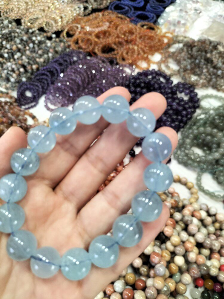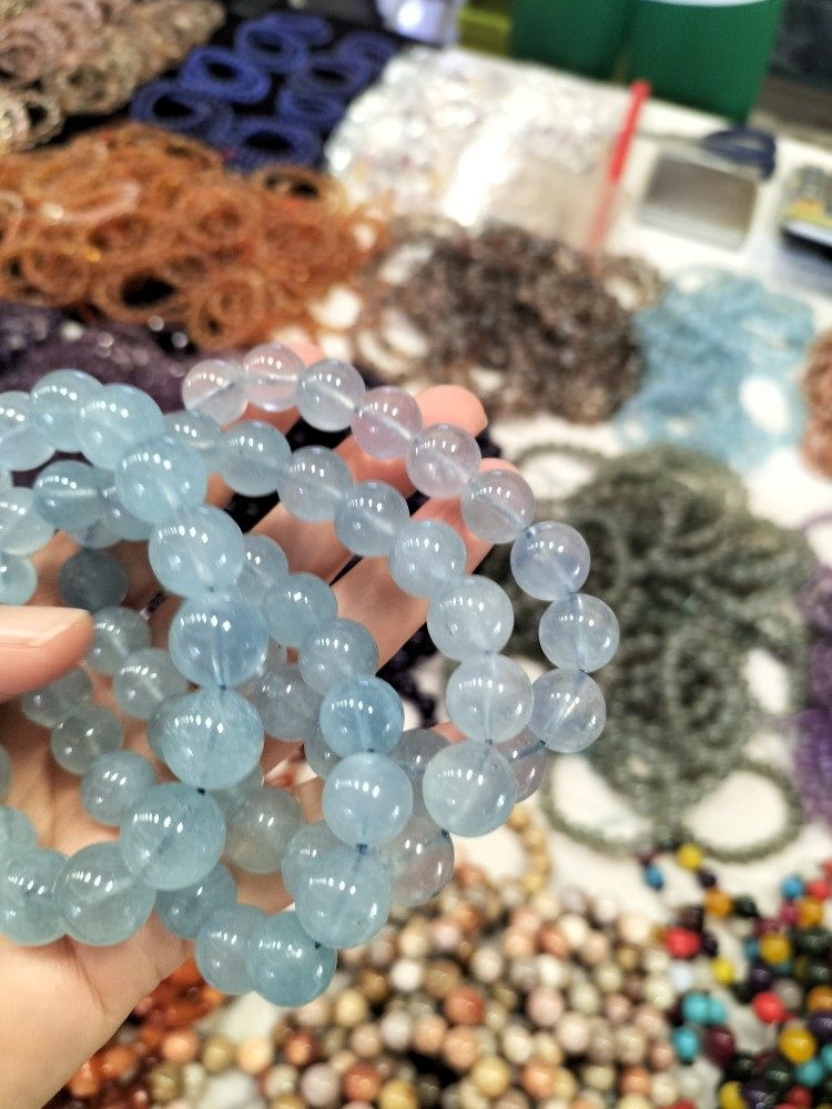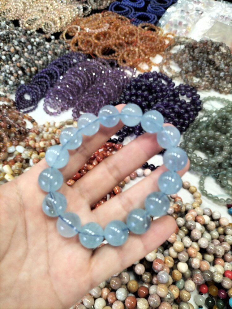 海蓝宝手链女冰种魔鬼蓝海蓝宝原石单圈散珠蓝色珠子单圈串珠手串