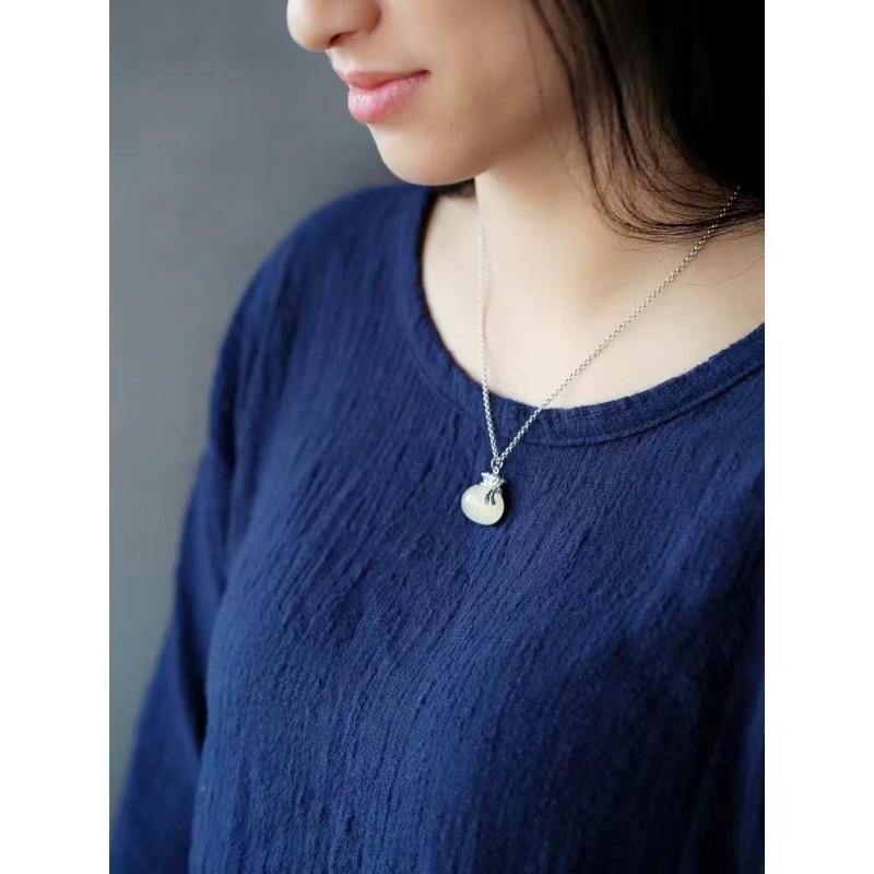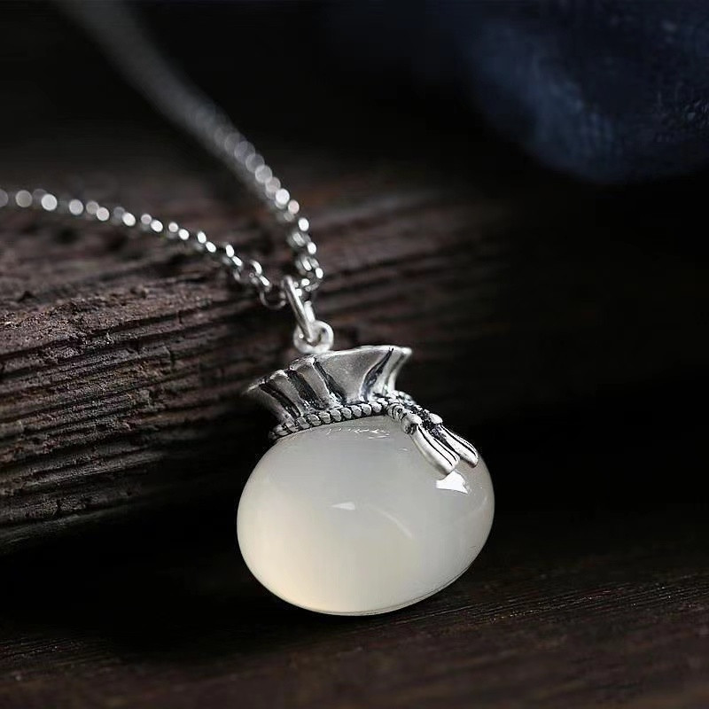 新中式汉服配饰设计感白色石钱袋古风项链小众成熟优雅锁骨链女款