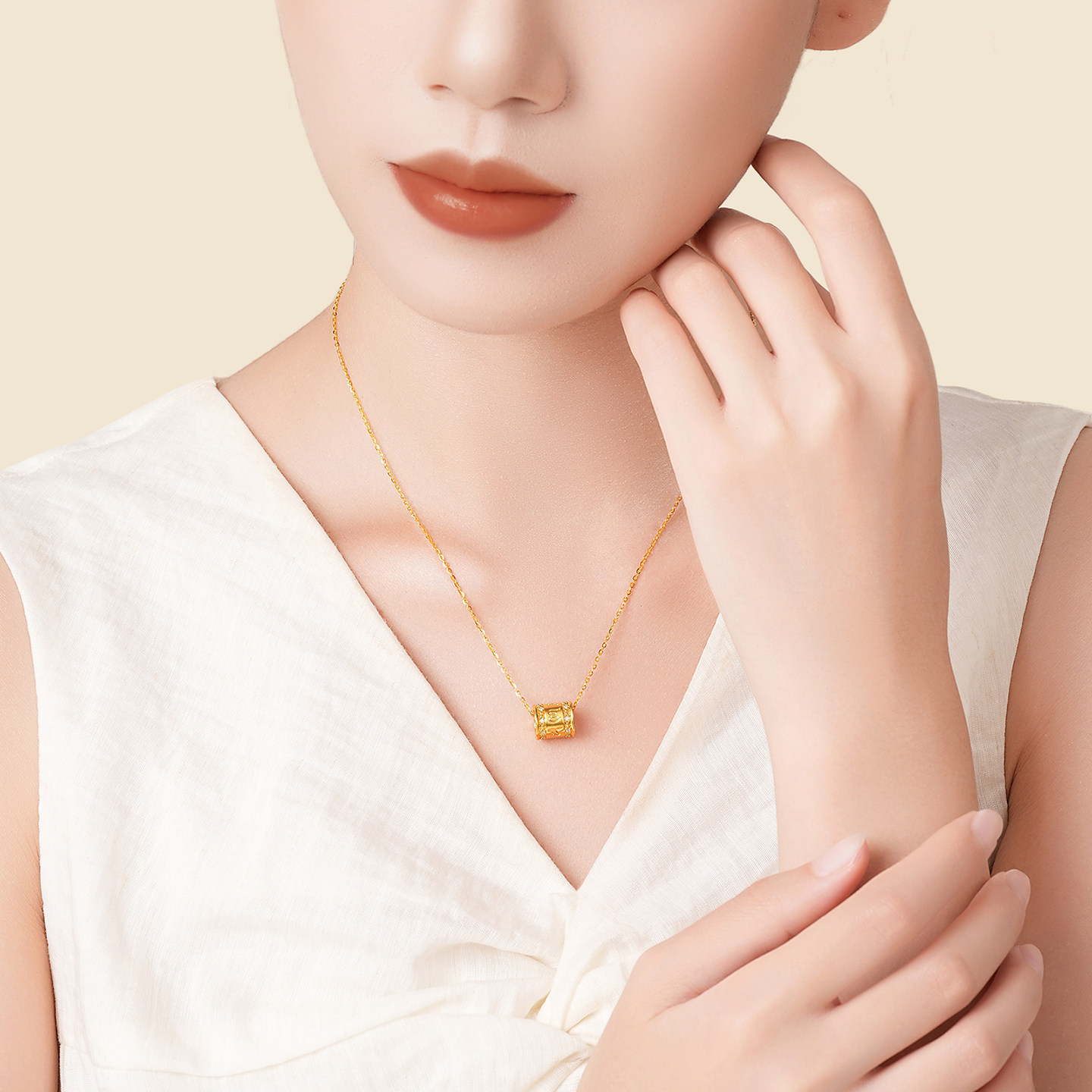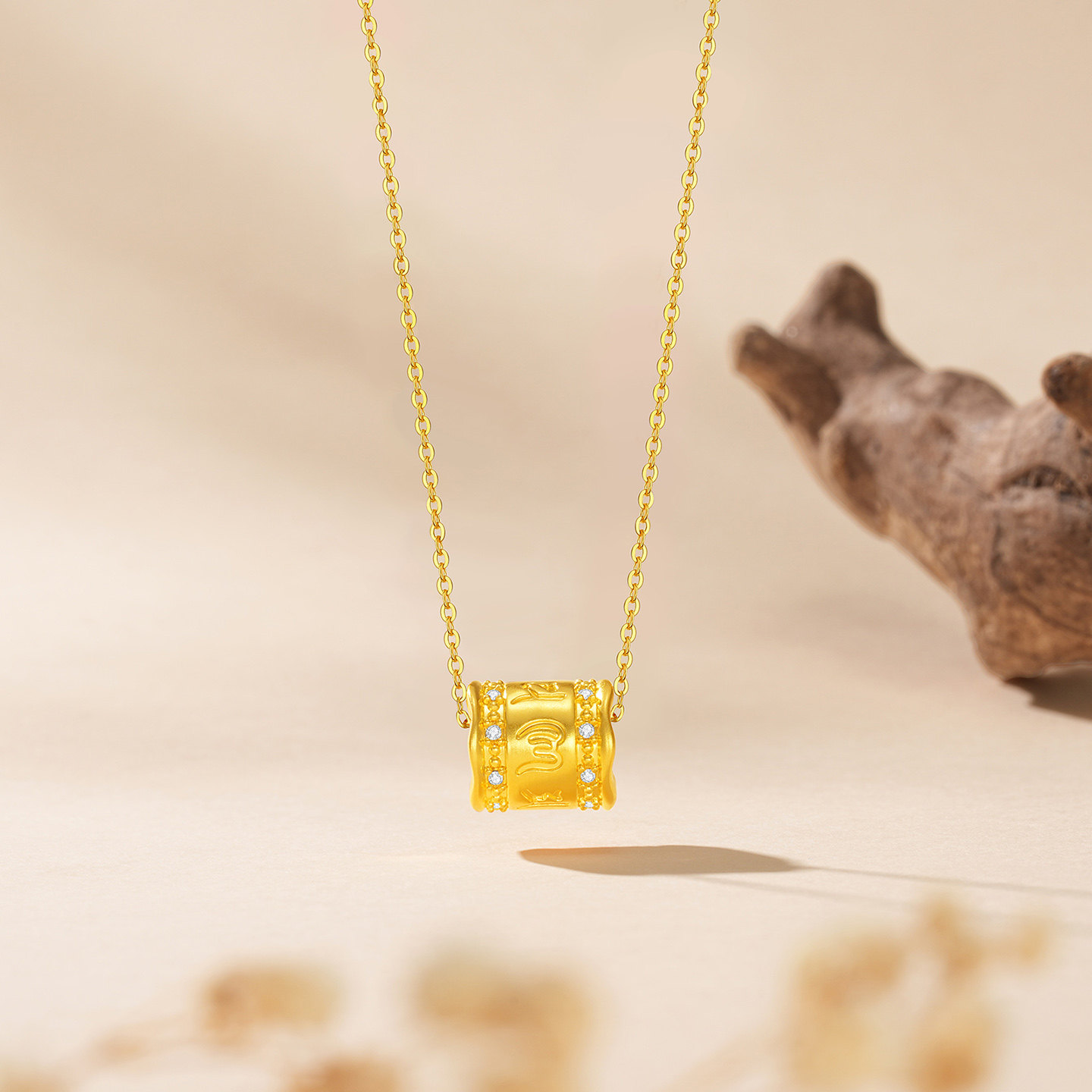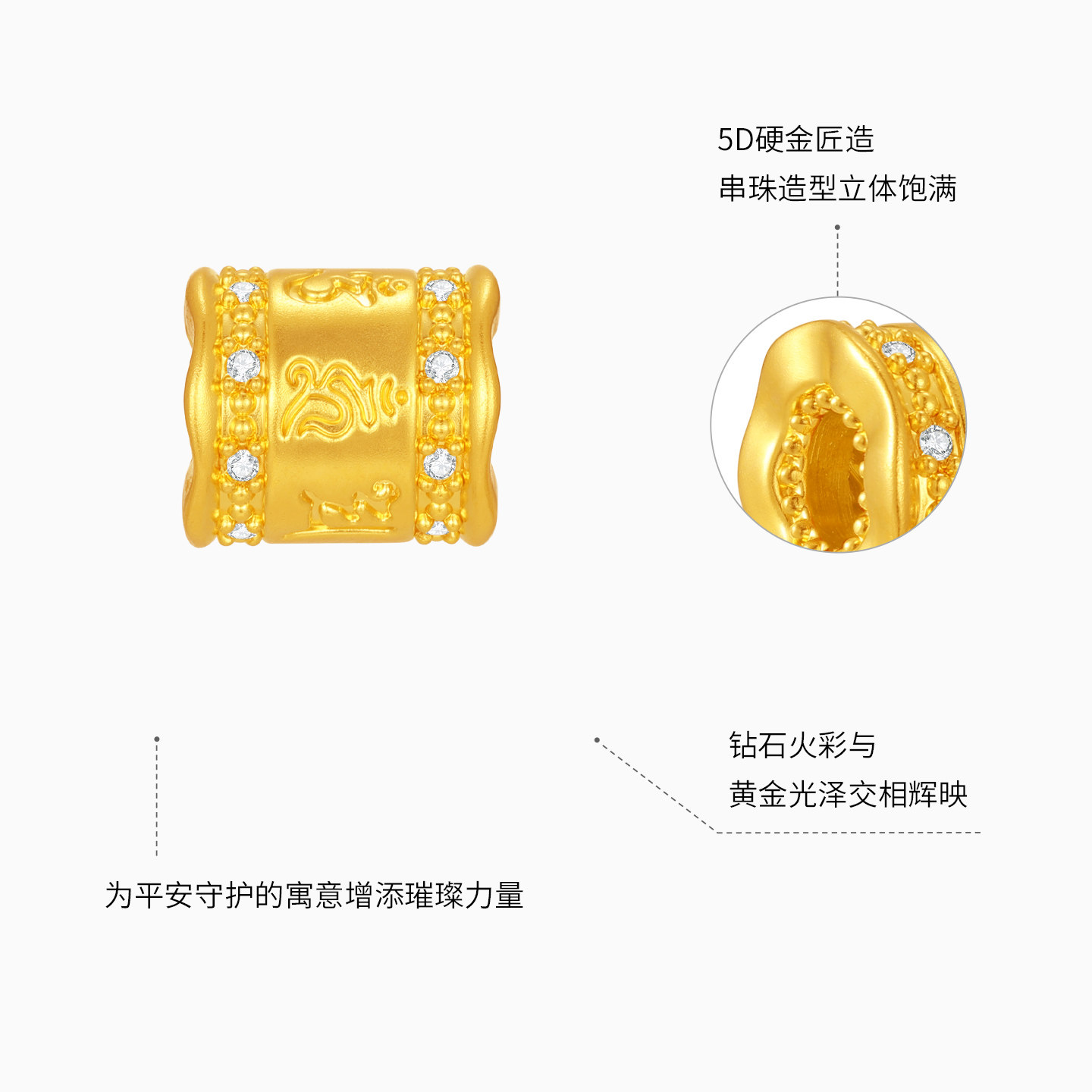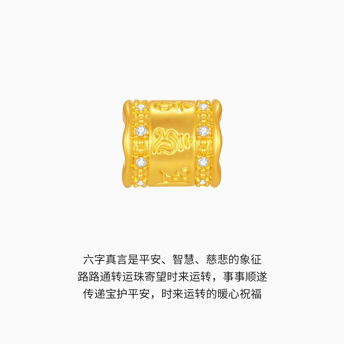 潮宏基宝护六字真言黄金钻石转运串珠吊坠足金5D硬金显大高级镶嵌
