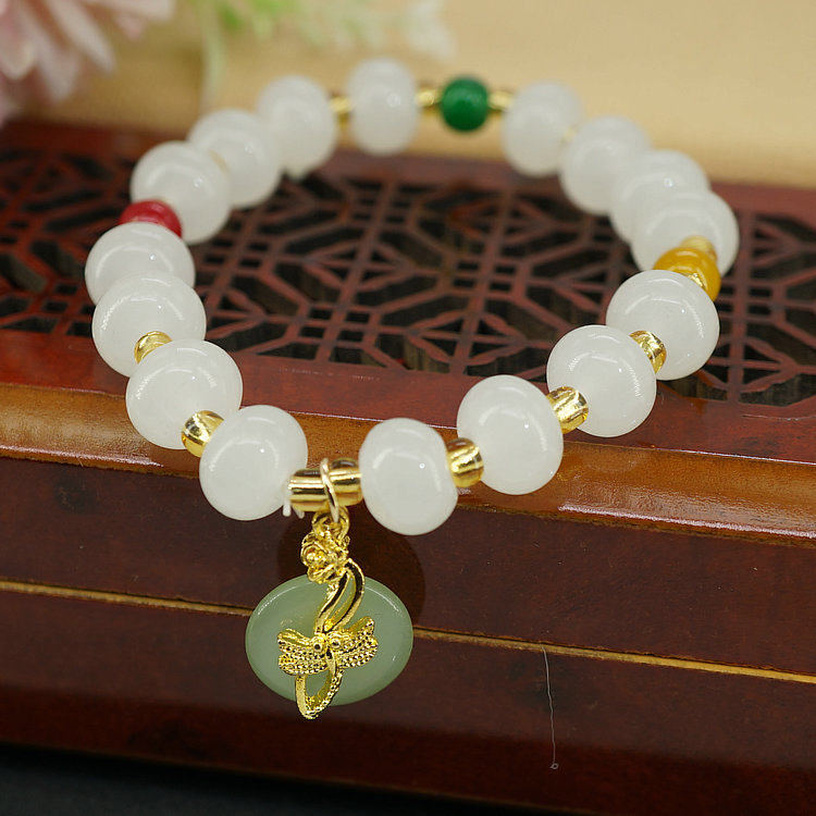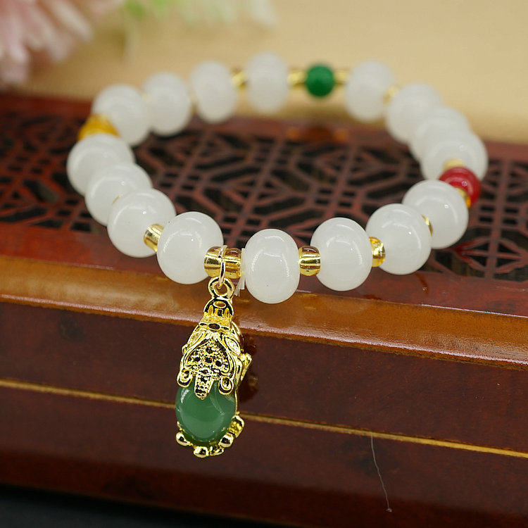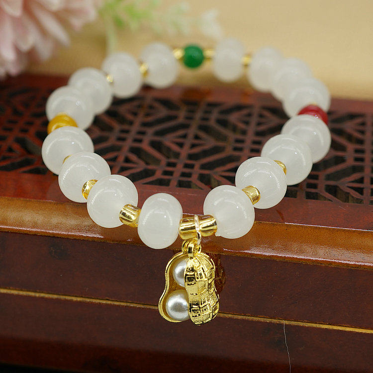 中国风仿白玉算盘珠手串女生甜美个性古风手链B饰品配饰义乌手饰
