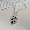 树叶项链蓝色锆石海蓝之心西洋古董银器vintage中古首饰海外古着