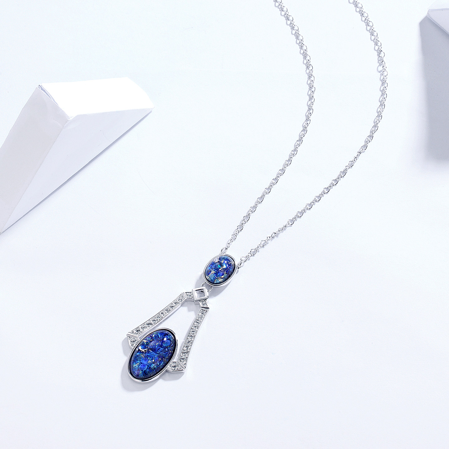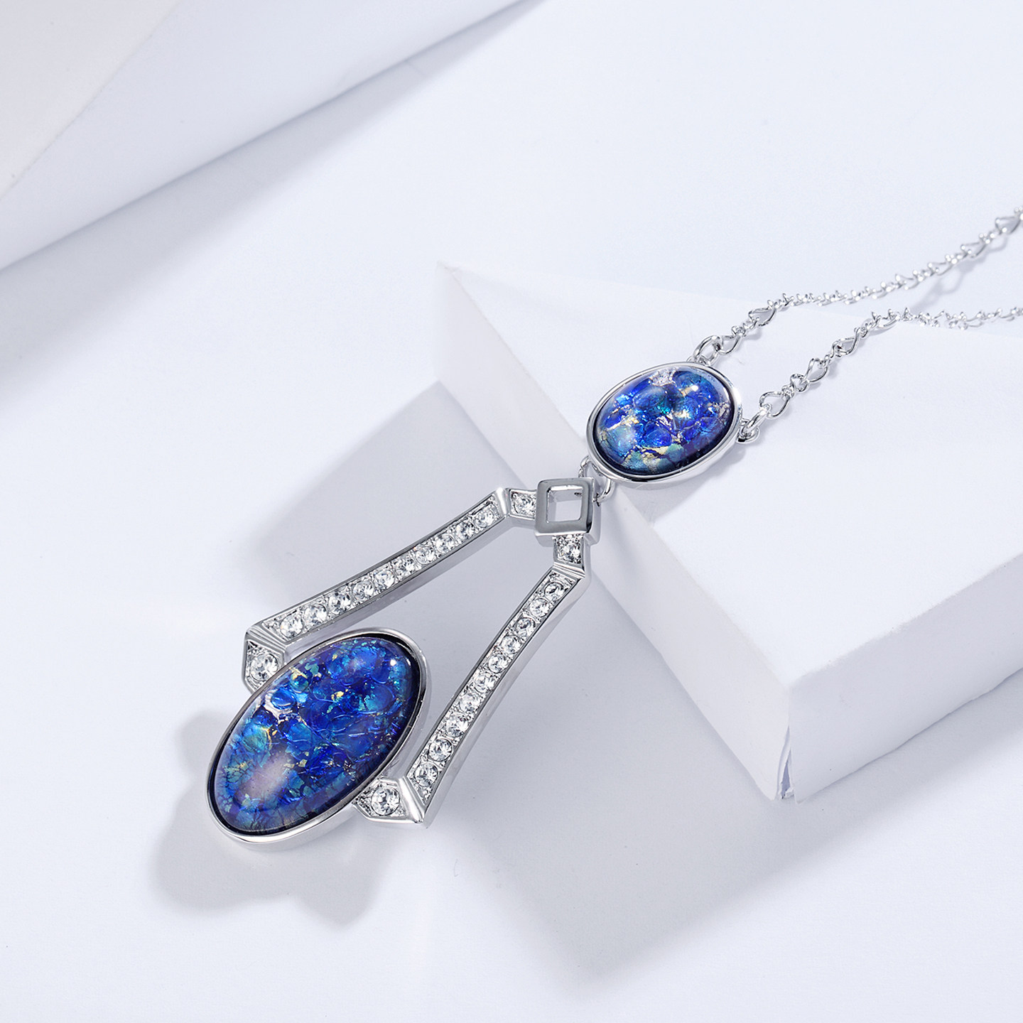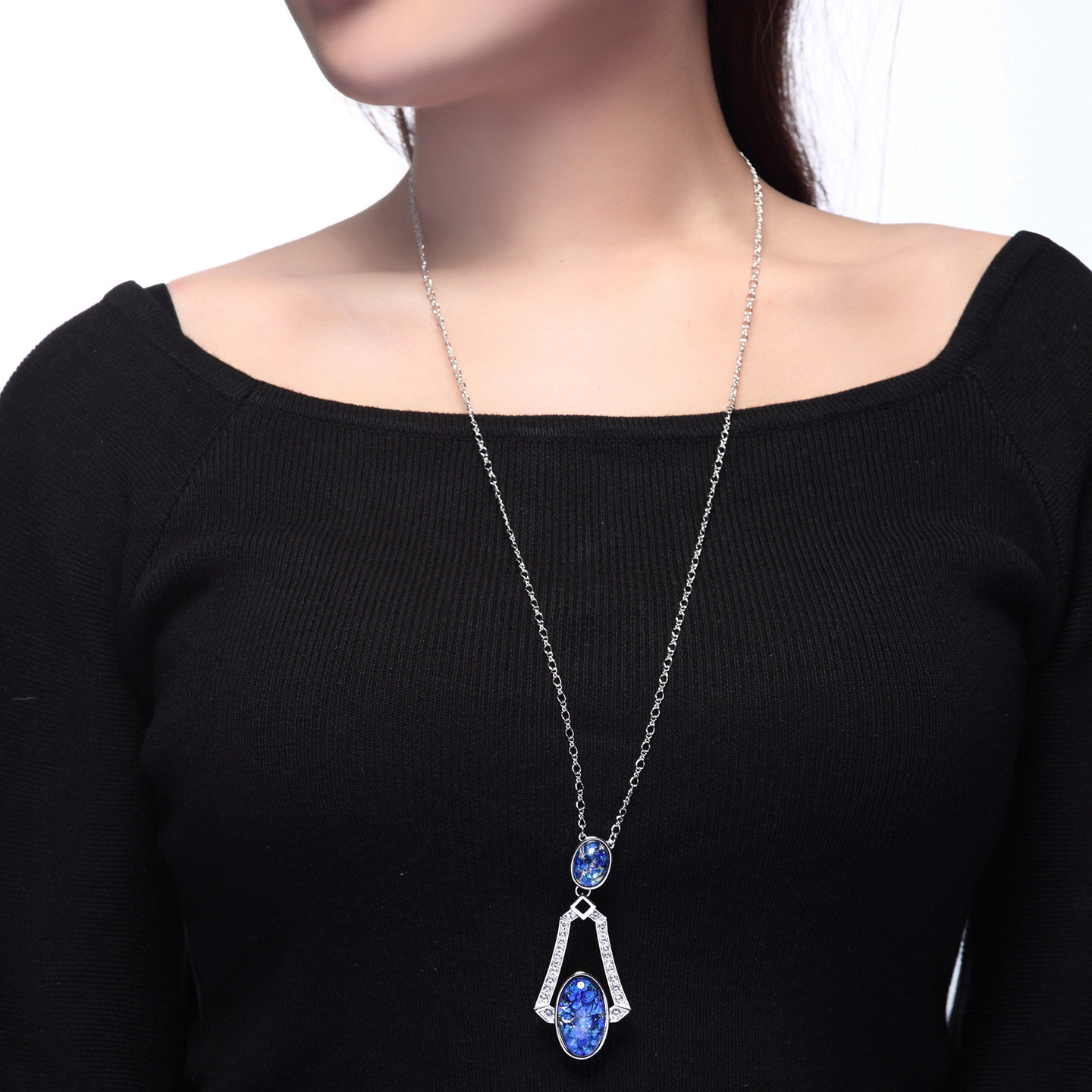 伊泰莲娜长链女仿半宝水瓶毛衣链四季链蓝色吊坠短链生日礼物