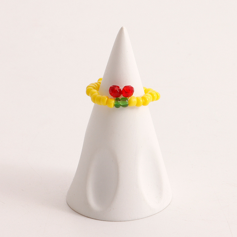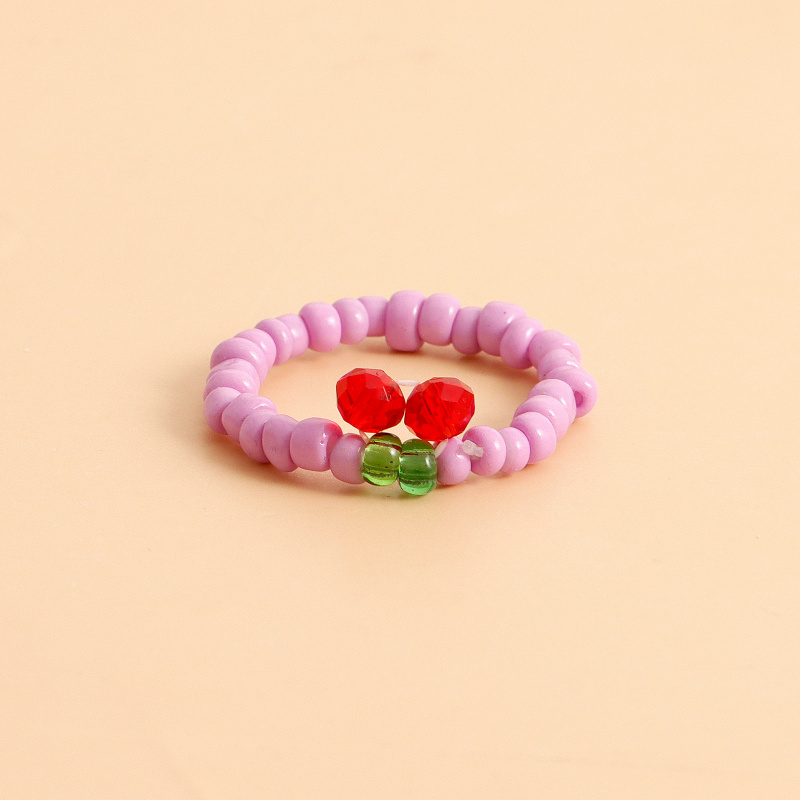 欧美饰品彩色小号米珠红樱桃弹力绳戒指女设计感小众简约手饰首饰