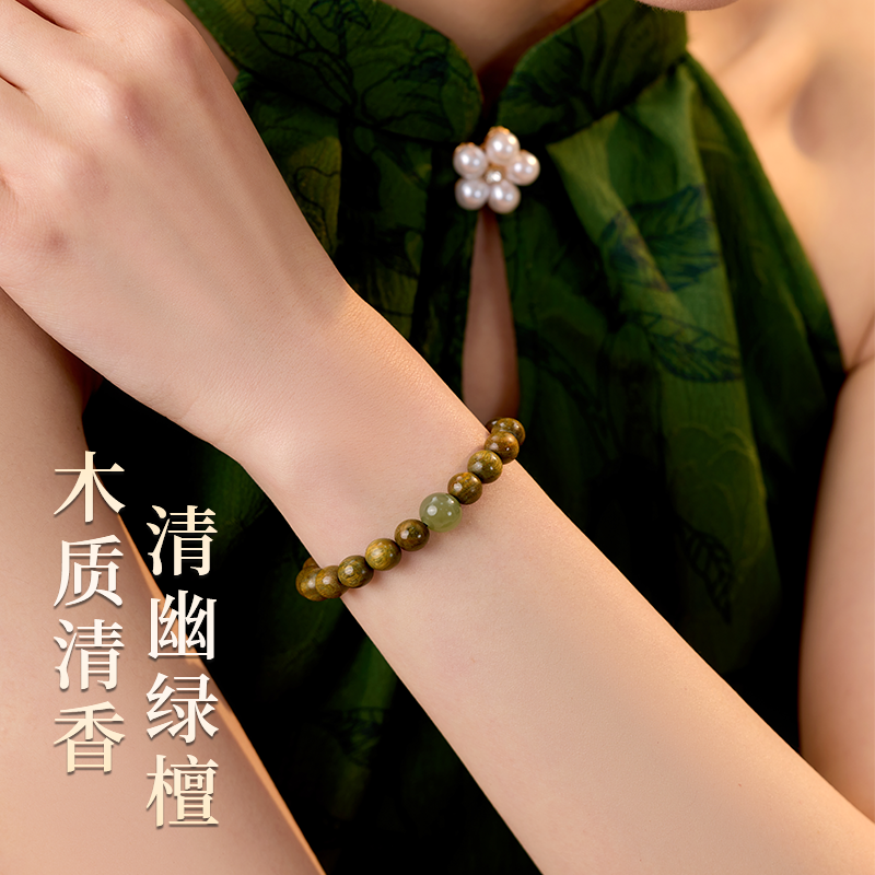 纯天然老绿檀和田玉手串女檀木文玩檀香木手链佛珠正品官方旗舰店
