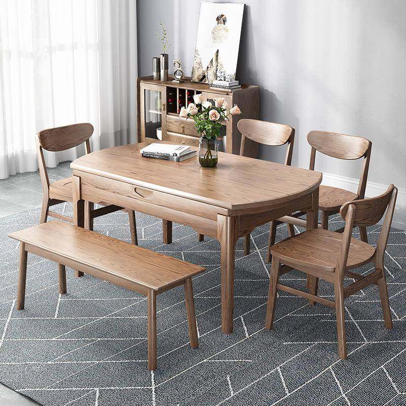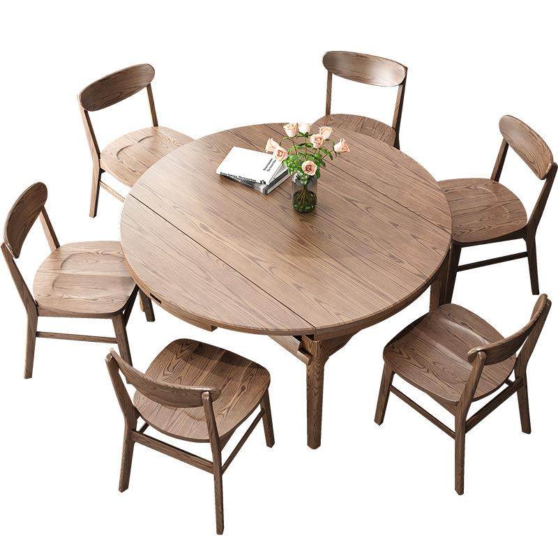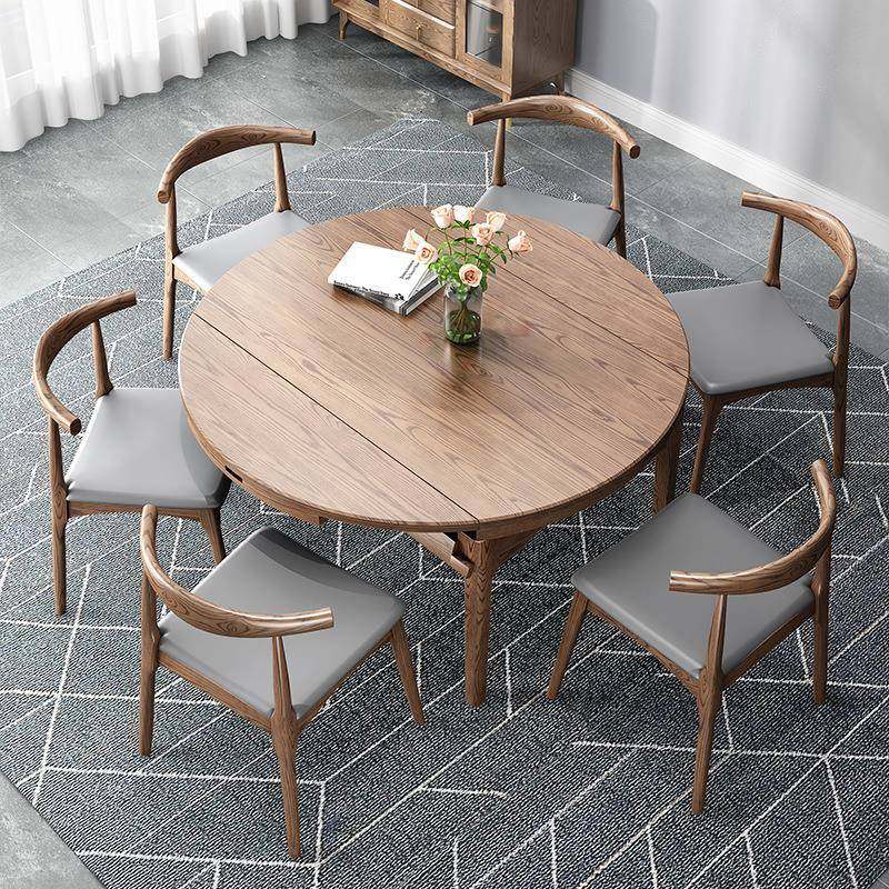 全实木圆餐桌椅组合可伸缩折叠家用小户型现代简约方圆两用白蜡木