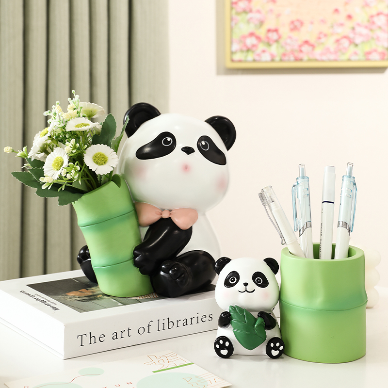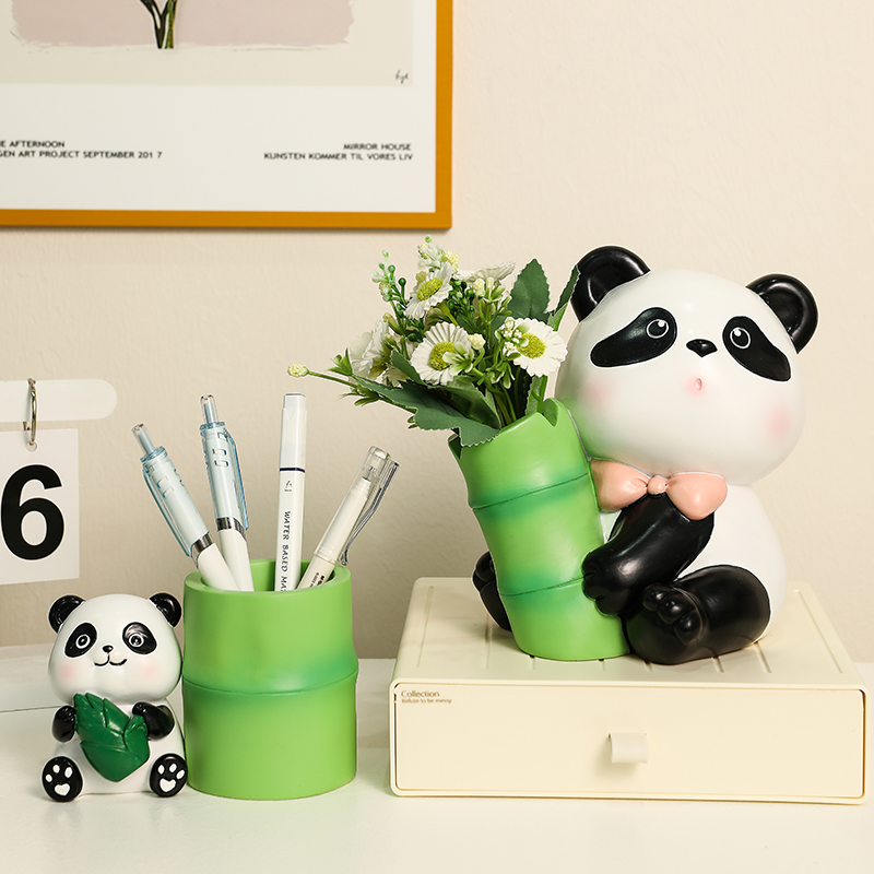 创意可爱熊猫笔筒小摆件家用办公室好物桌面玄关装饰品实用小礼物