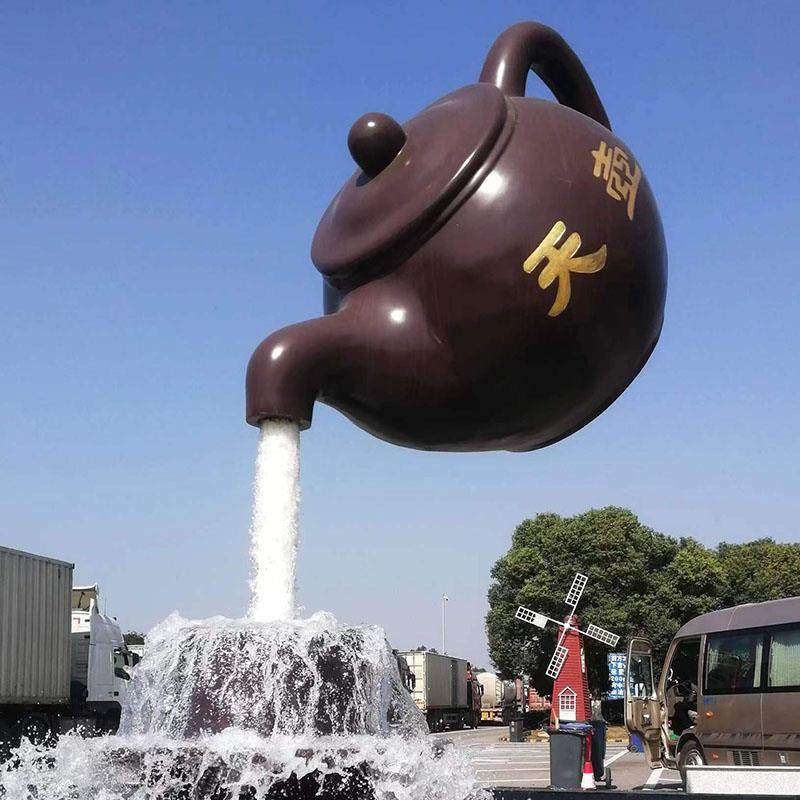 大型玻璃纤维悬空流水天壶茶壶模型雕塑室内户外茶园景观装饰摆饰