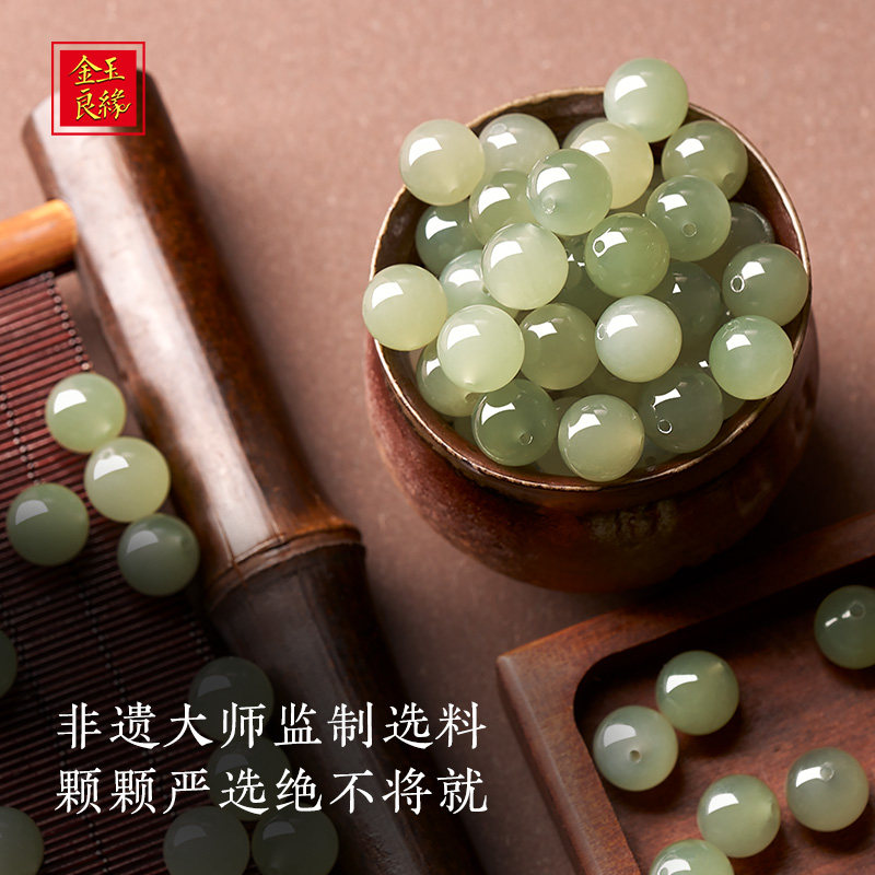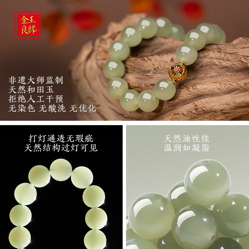 金玉良缘和田玉手串【葡萄肉】18K金青白玉手饰礼天然和田玉手链