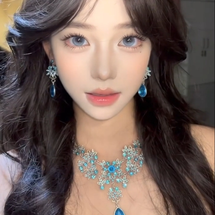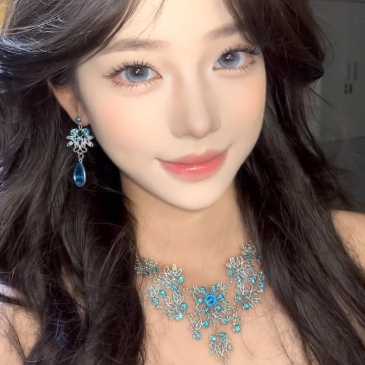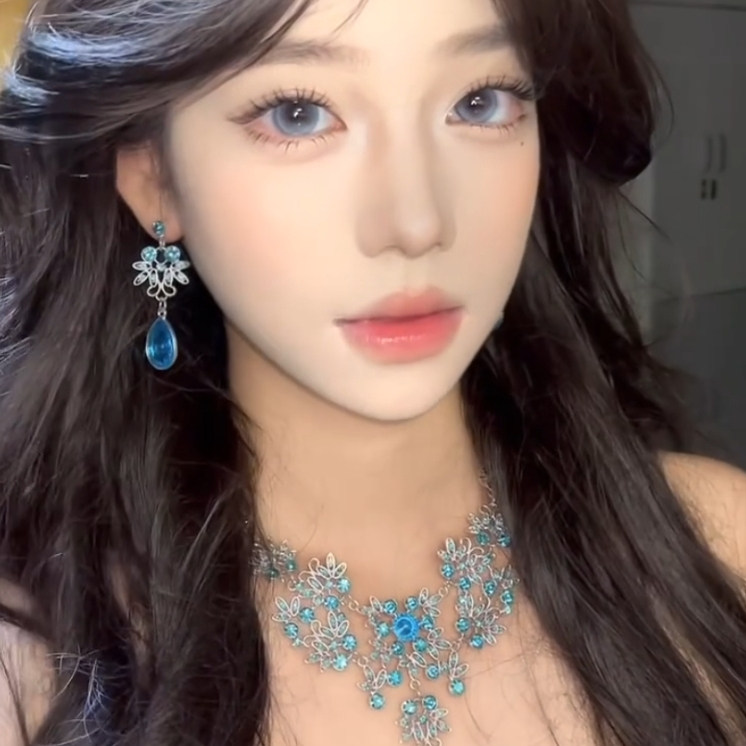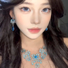 zoozmomo蓝色花朵水滴锆石流苏项链女轻奢小众高级感晚礼服锁骨链