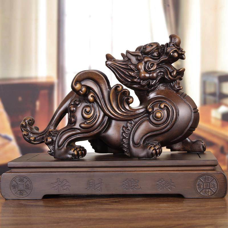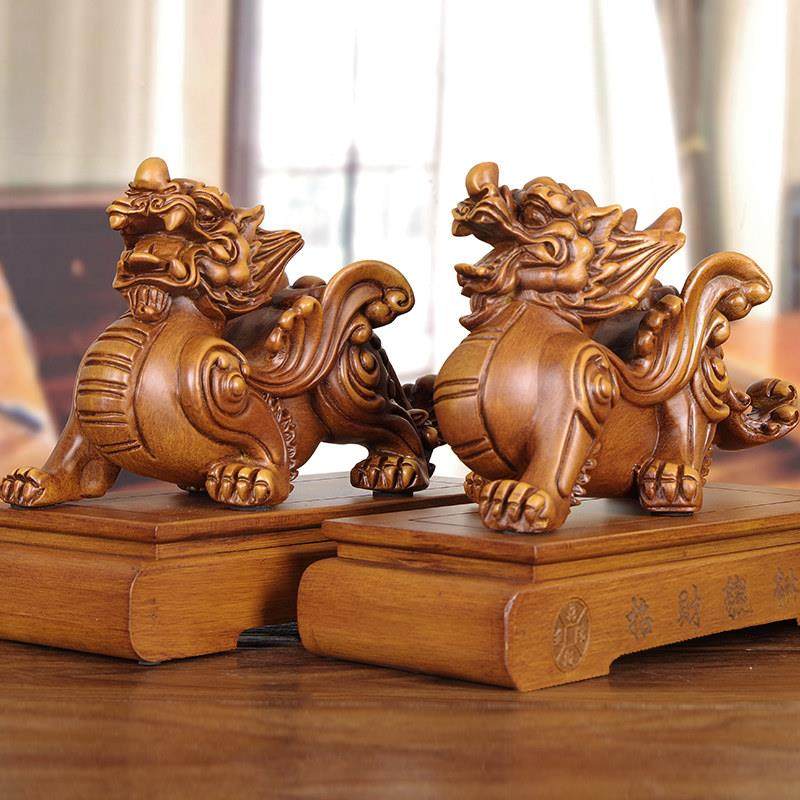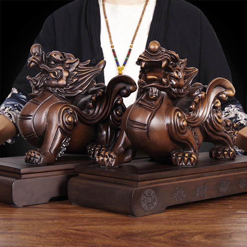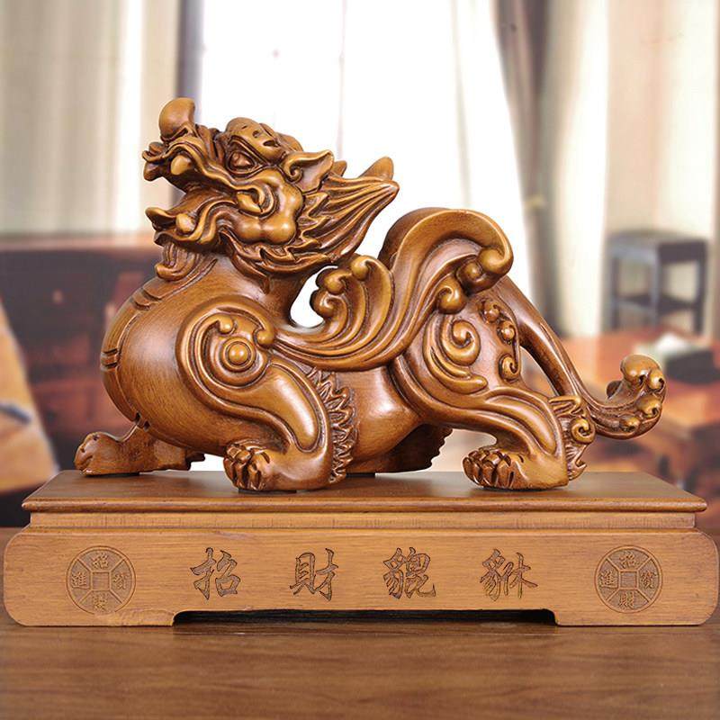 实木雕招财貔貅摆件手工艺品皮休中式风水装饰纯手工招财镇宅 花