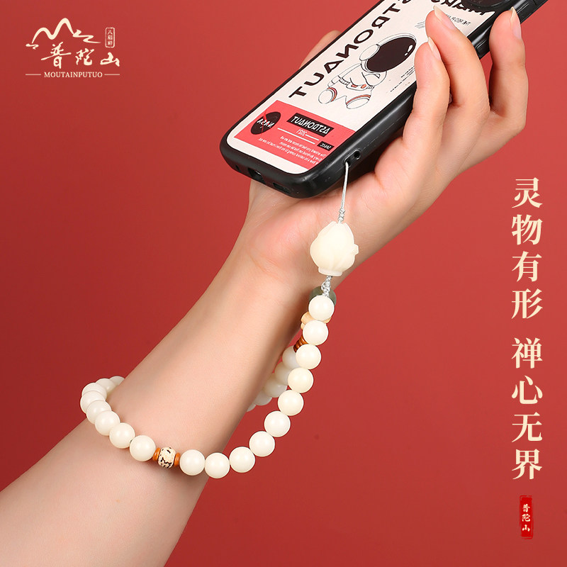 普陀山白玉菩提手机链挂饰手腕串珠手机J挂件防丢高端珠子挂绳新