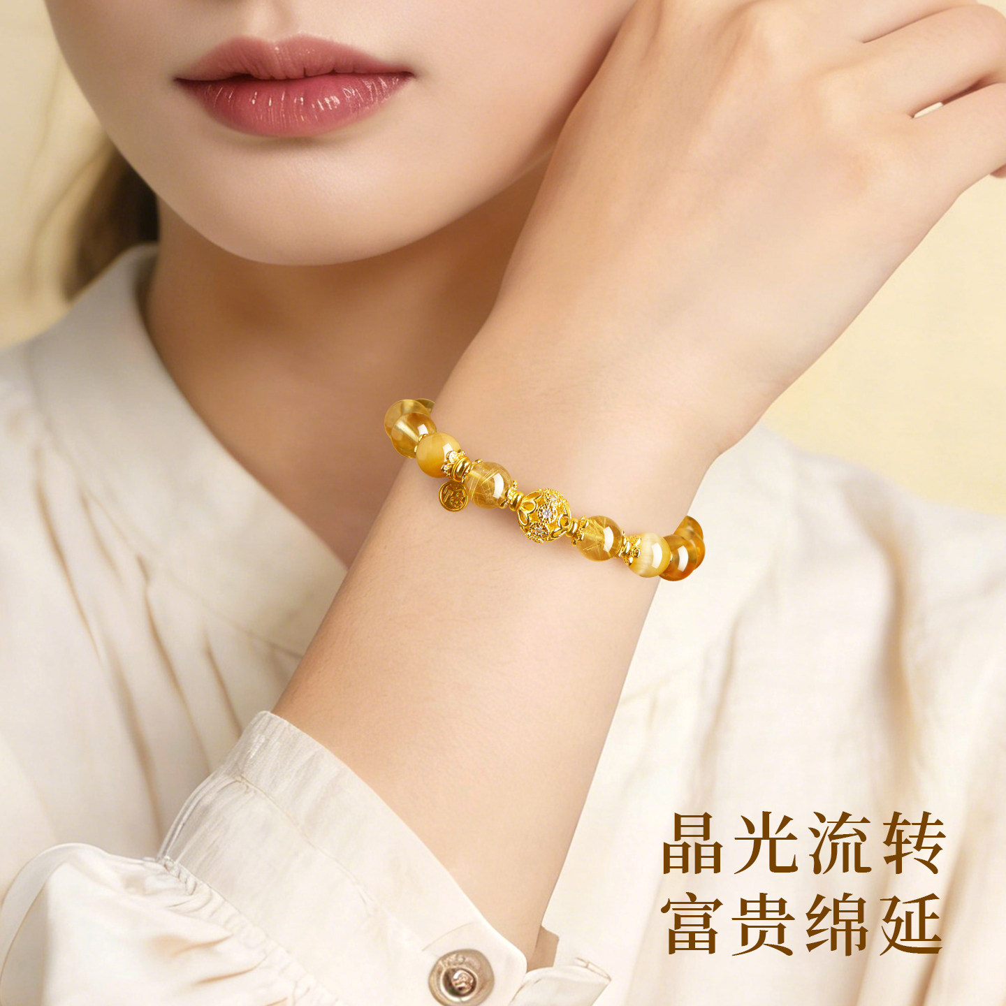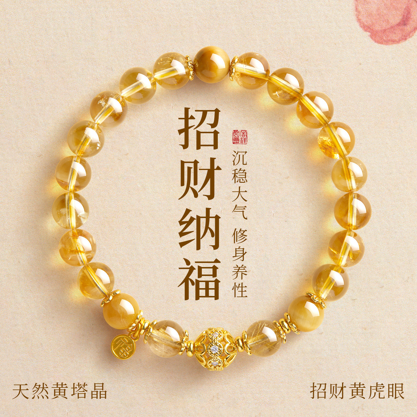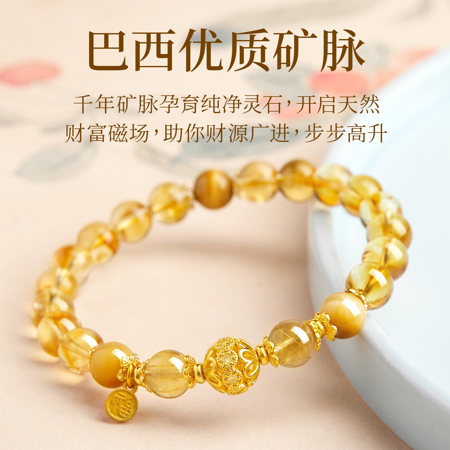 黄塔晶手串女款天然黄色水晶手链男士高级感手饰正品官方旗舰店