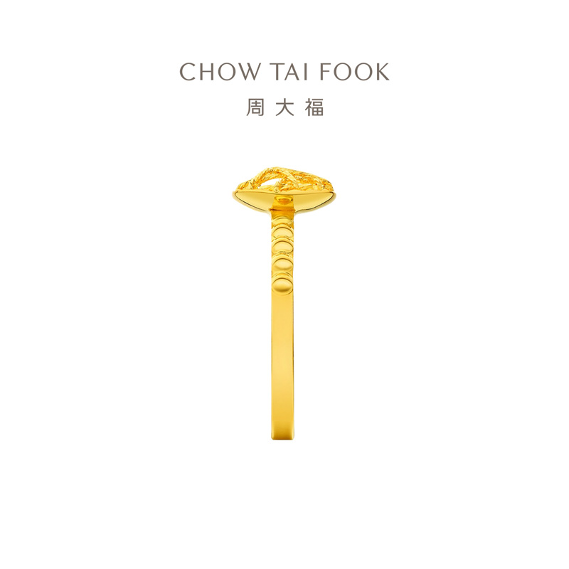 周大福时尚精致爆闪小方糖足金黄金戒指女计价F233239
