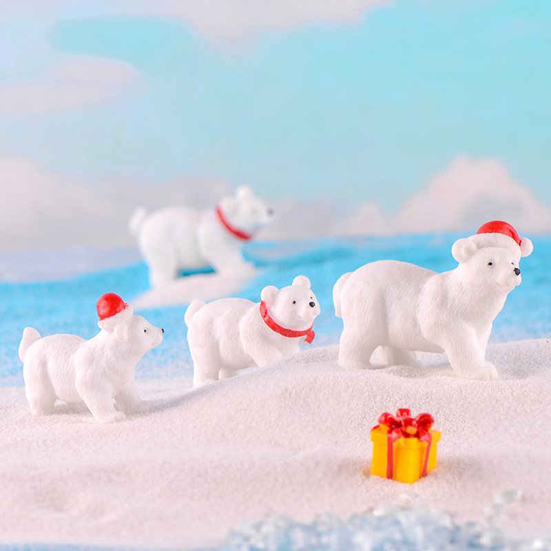 圣诞节小礼物圣诞帽北极熊树脂小摆件微景观造景装饰品蛋糕摆件