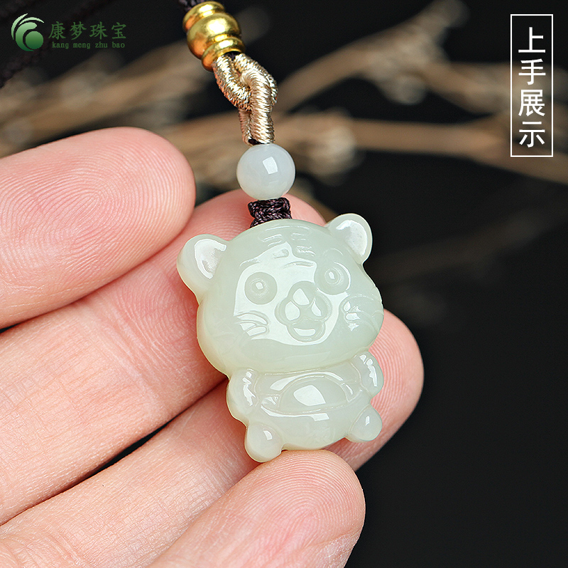 天然和田玉生肖虎吊坠虎虎生威挂件玉佩男女款玉饰品节日礼物项坠