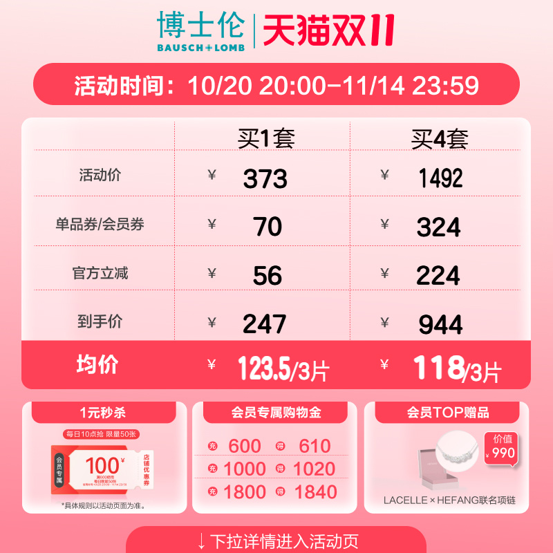 [买4赠4]博士伦硅水凝胶隐形近视眼镜ultra奥澈月抛官方正品透明