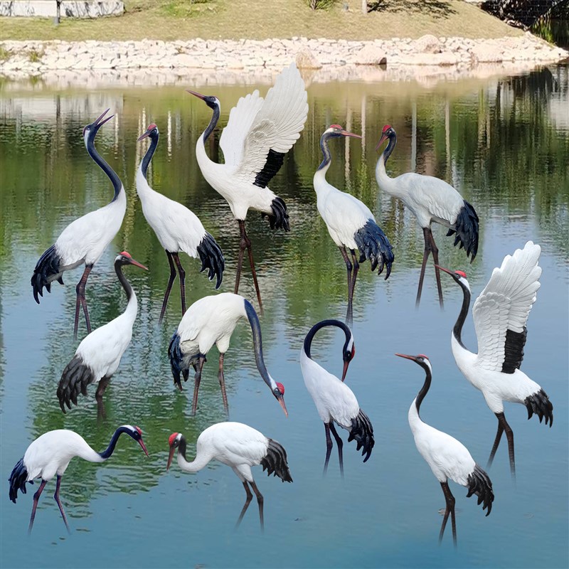 户外仿真仙鹤雕塑水池塘白鹭装饰花E园林鸟玻璃钢景观模型白鹤摆