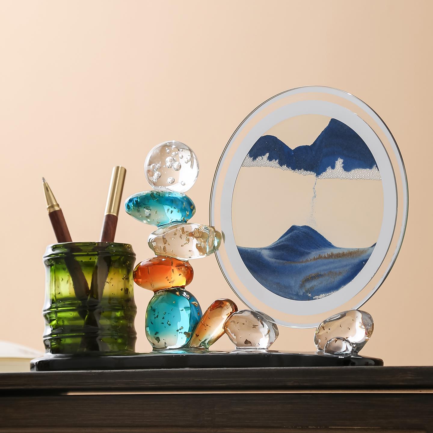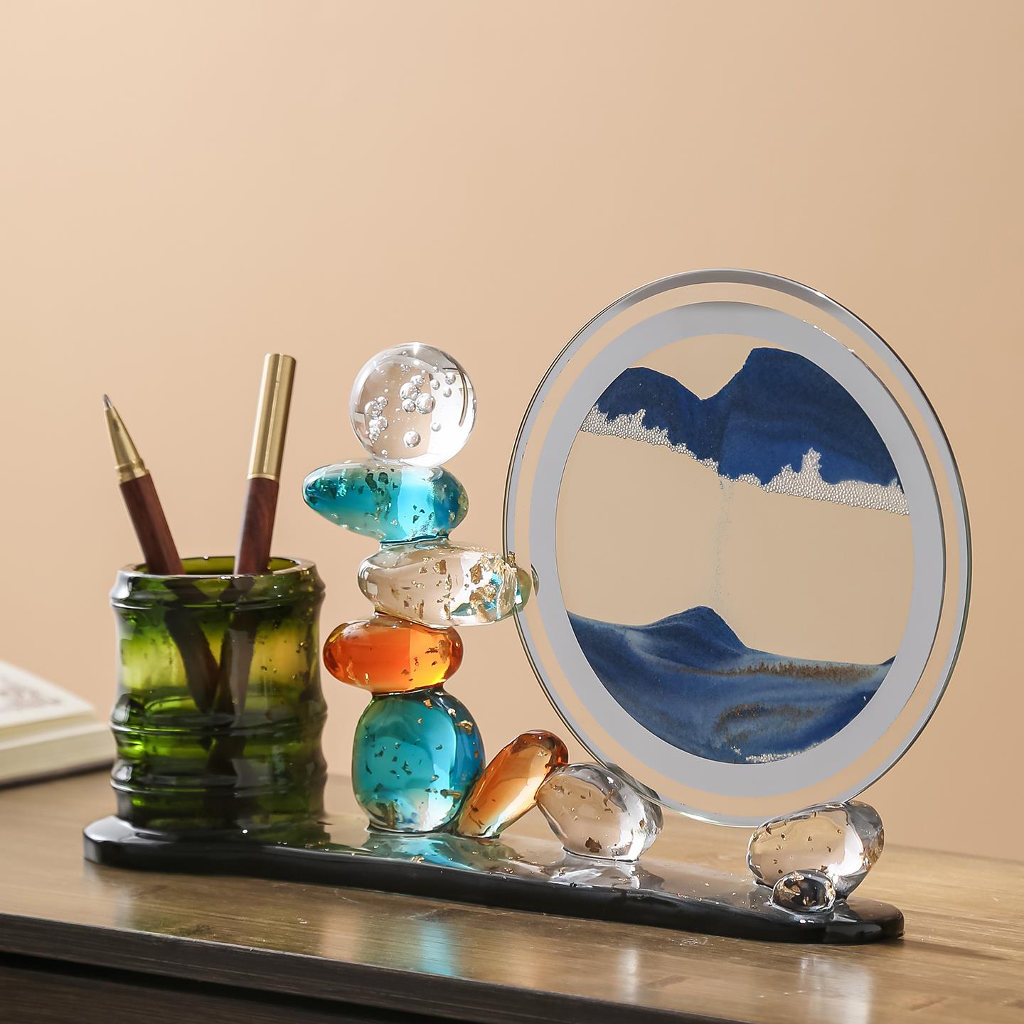笔筒创意流沙画 画办公室摆件高级感小众桌面书房装饰毕业礼物送