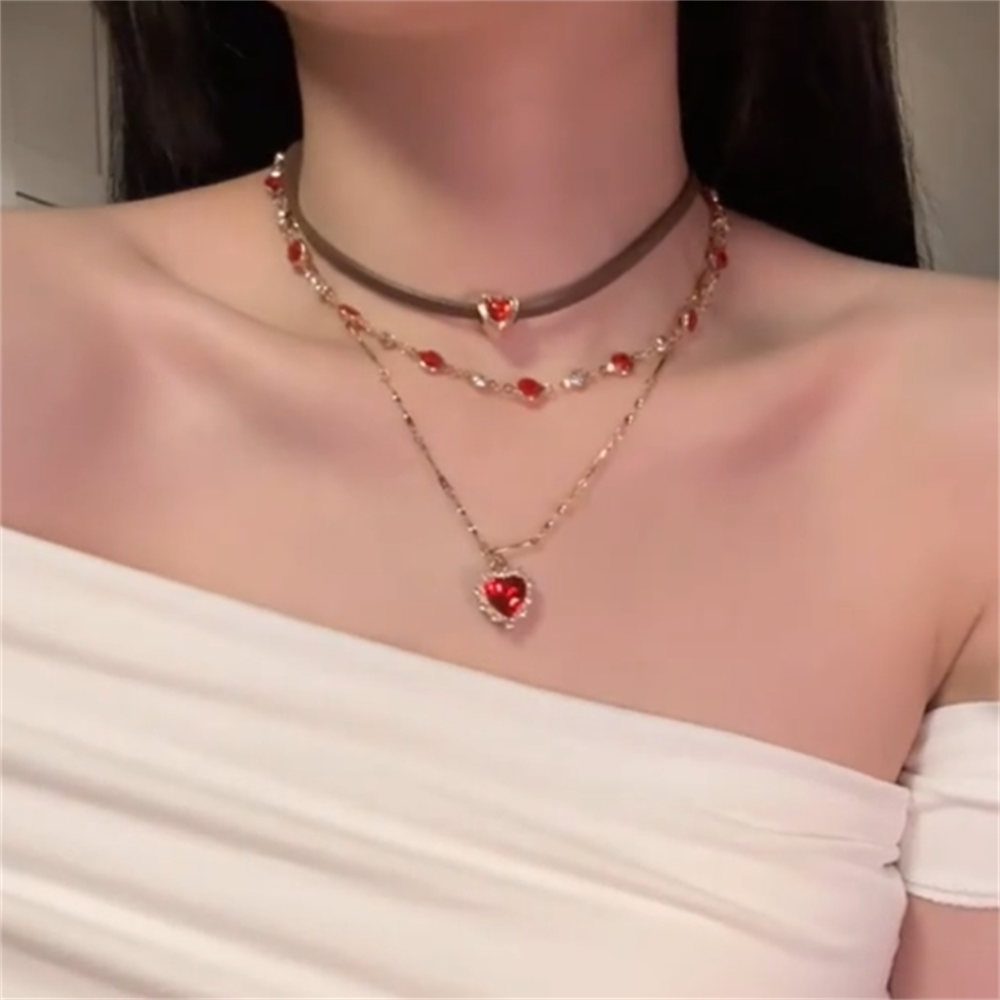 zoozmomo红色爱心吊坠锁骨链choker颈链女轻奢高级感多层叠戴项链