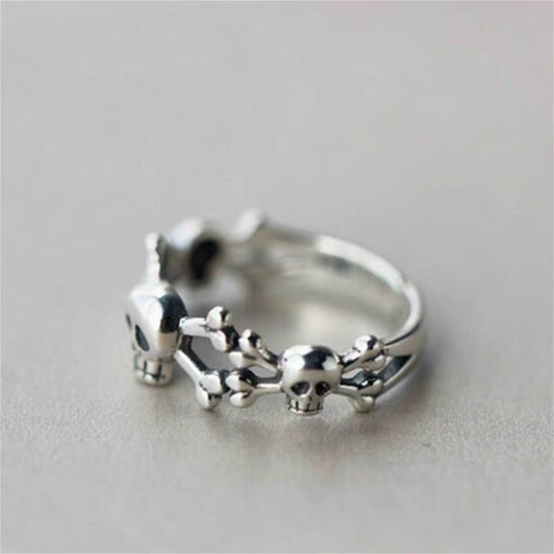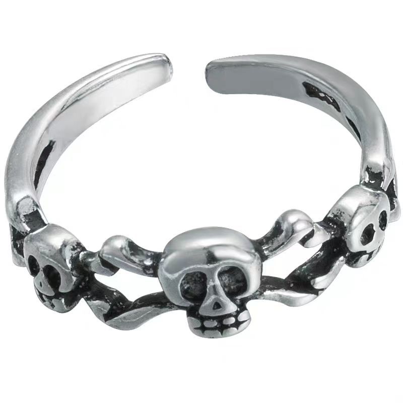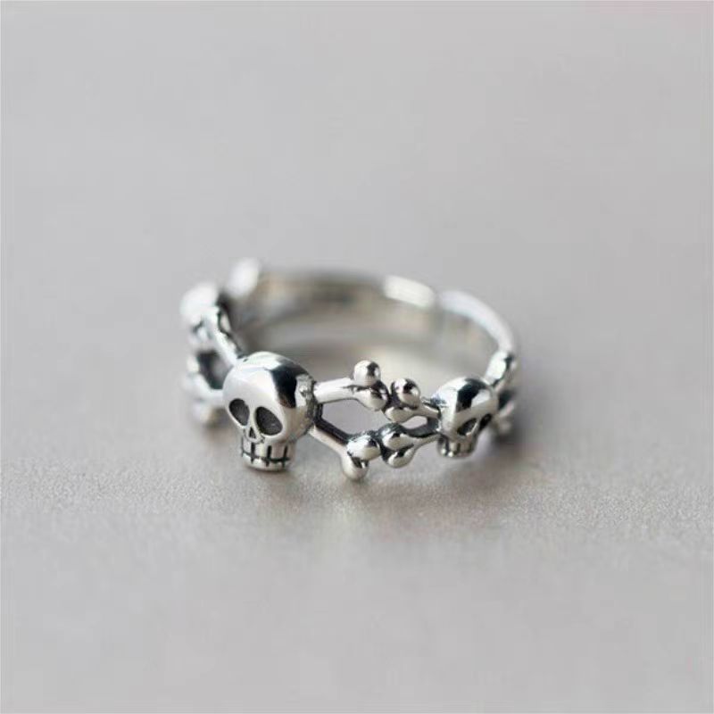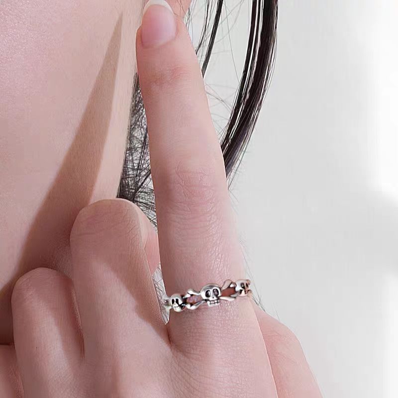 复古骷髅头戒指女2024年新款小众设计开口指环气质食指戒子