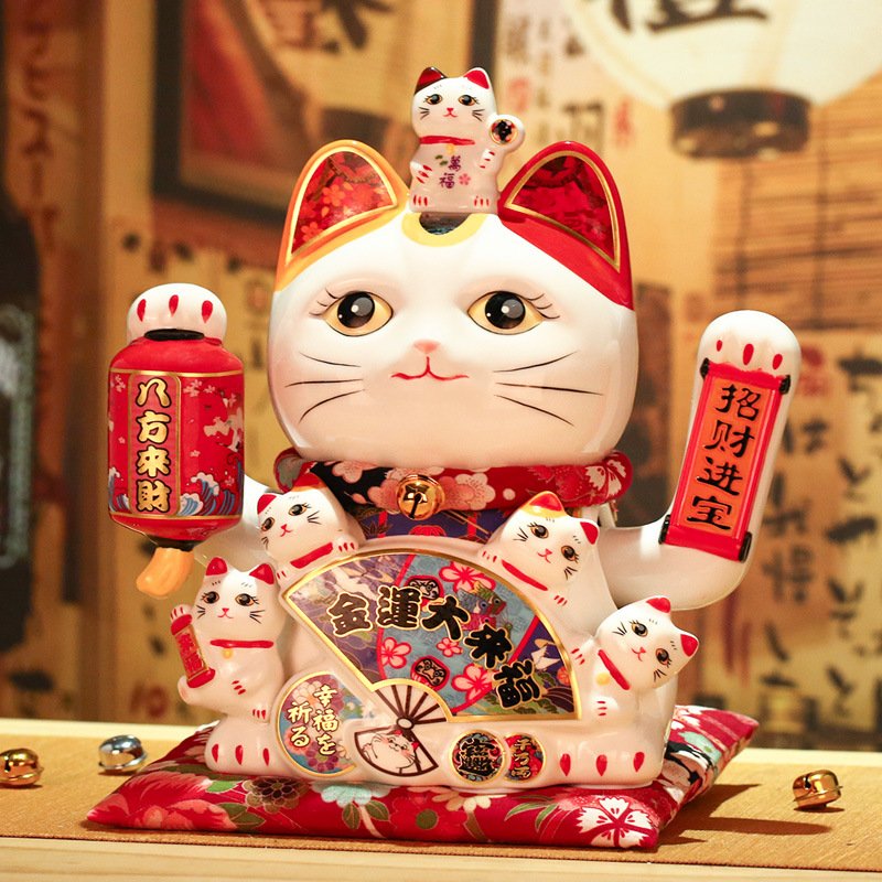 12寸招财猫摆件开业礼品店铺收银台前台自动摇手玄关招手发财猫