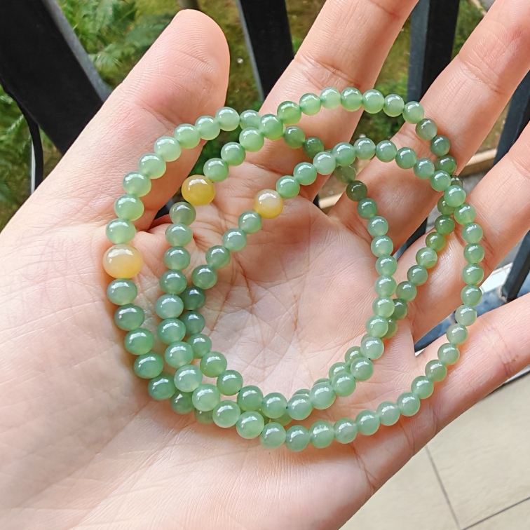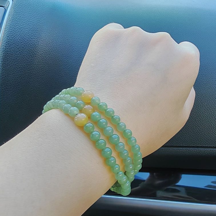 珑心 鸭蛋青俄罗斯碧玉和田玉手串手链三圈
