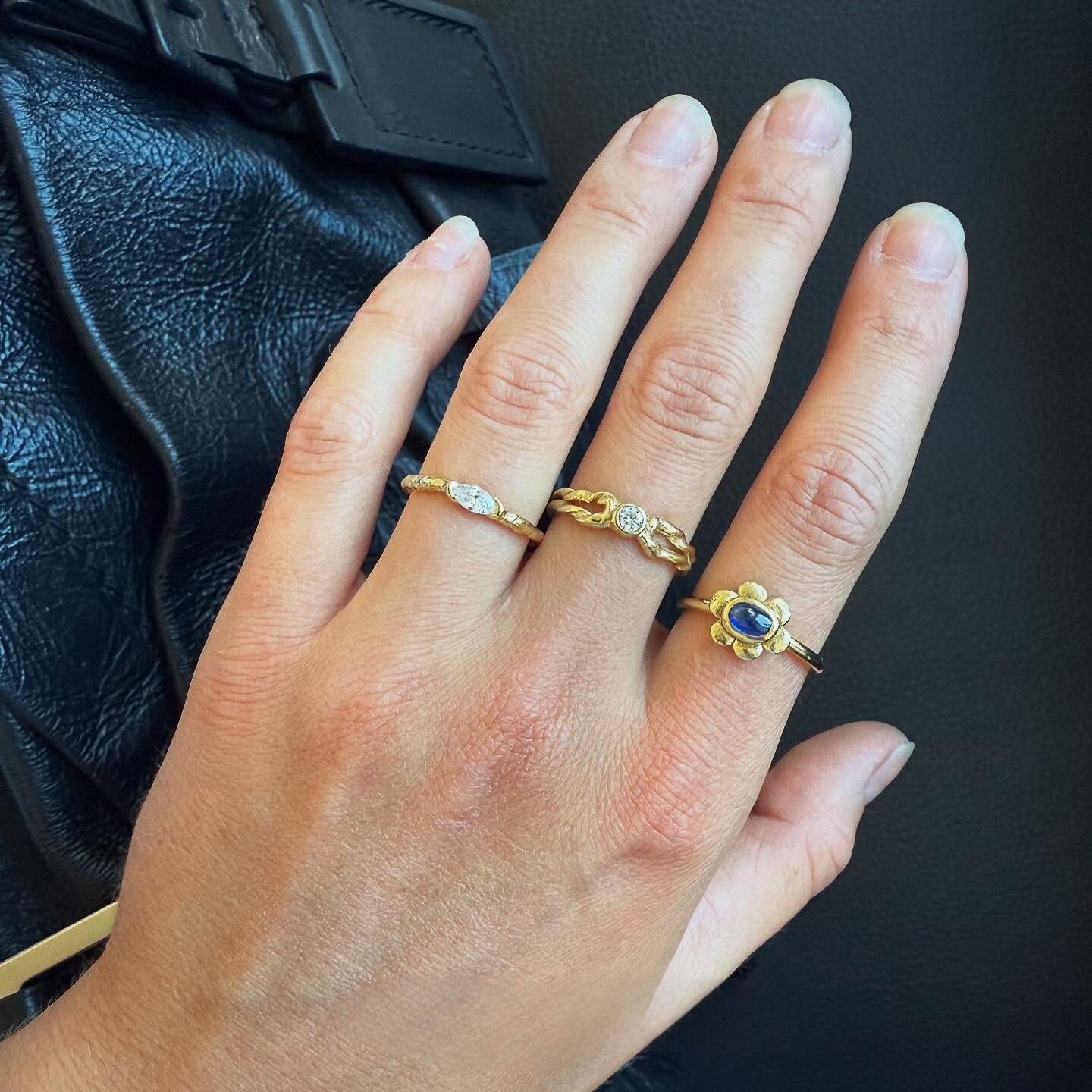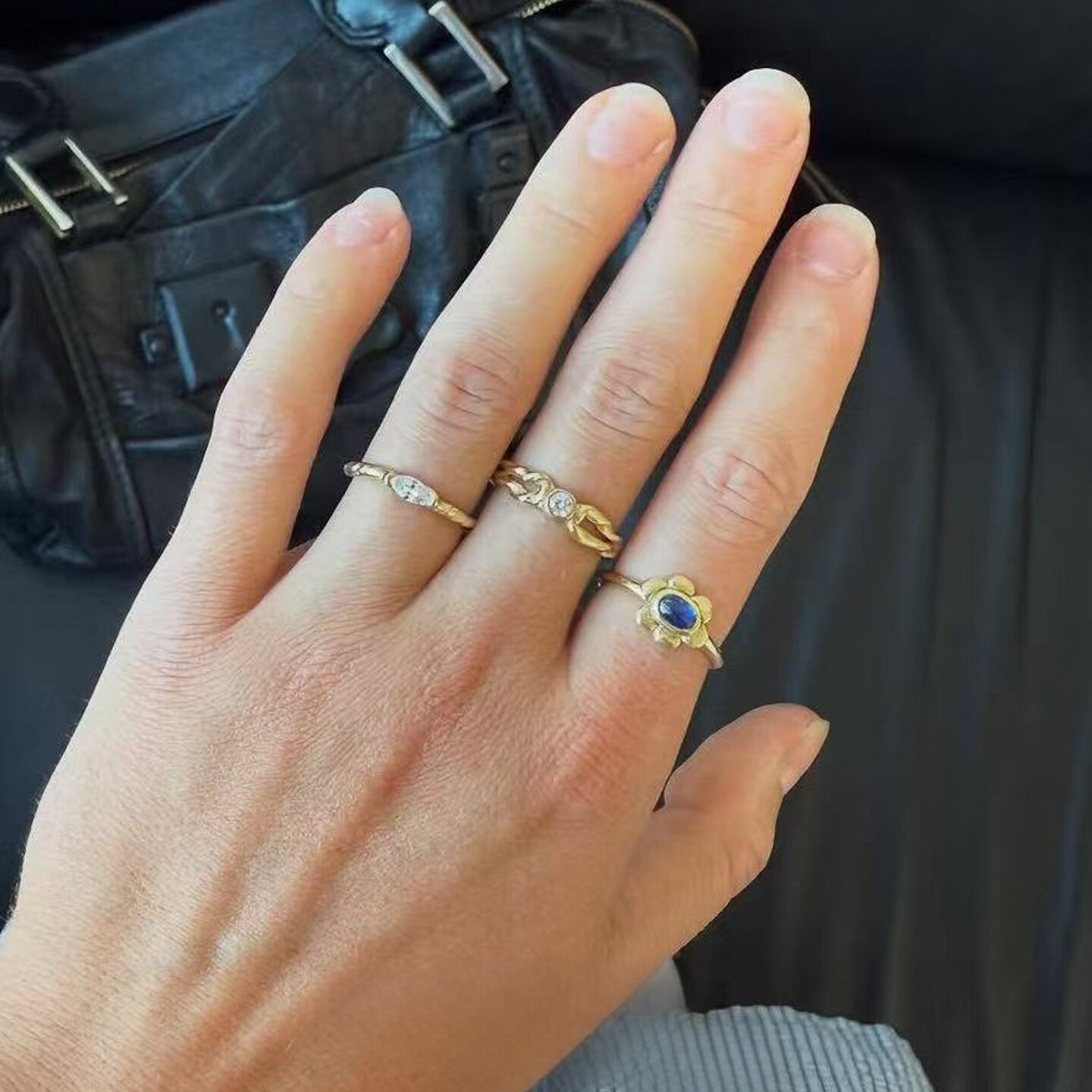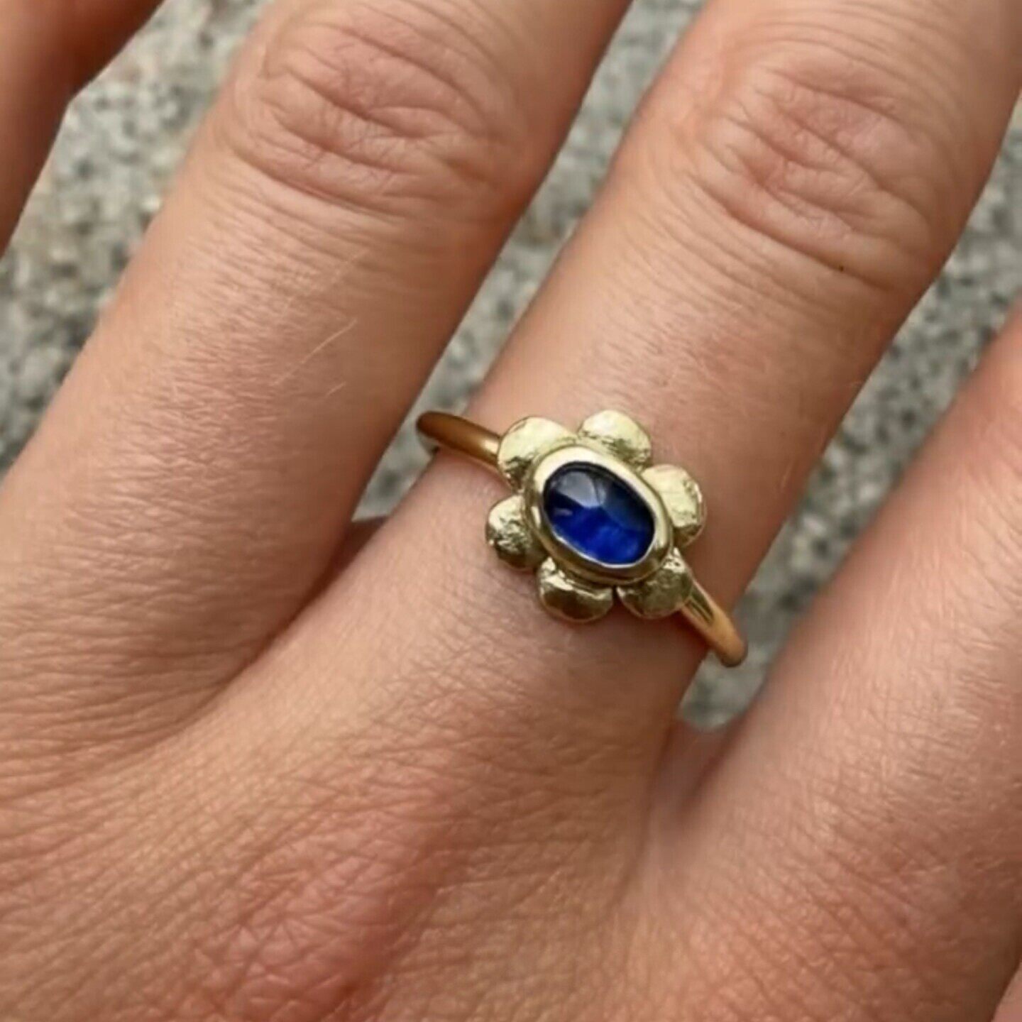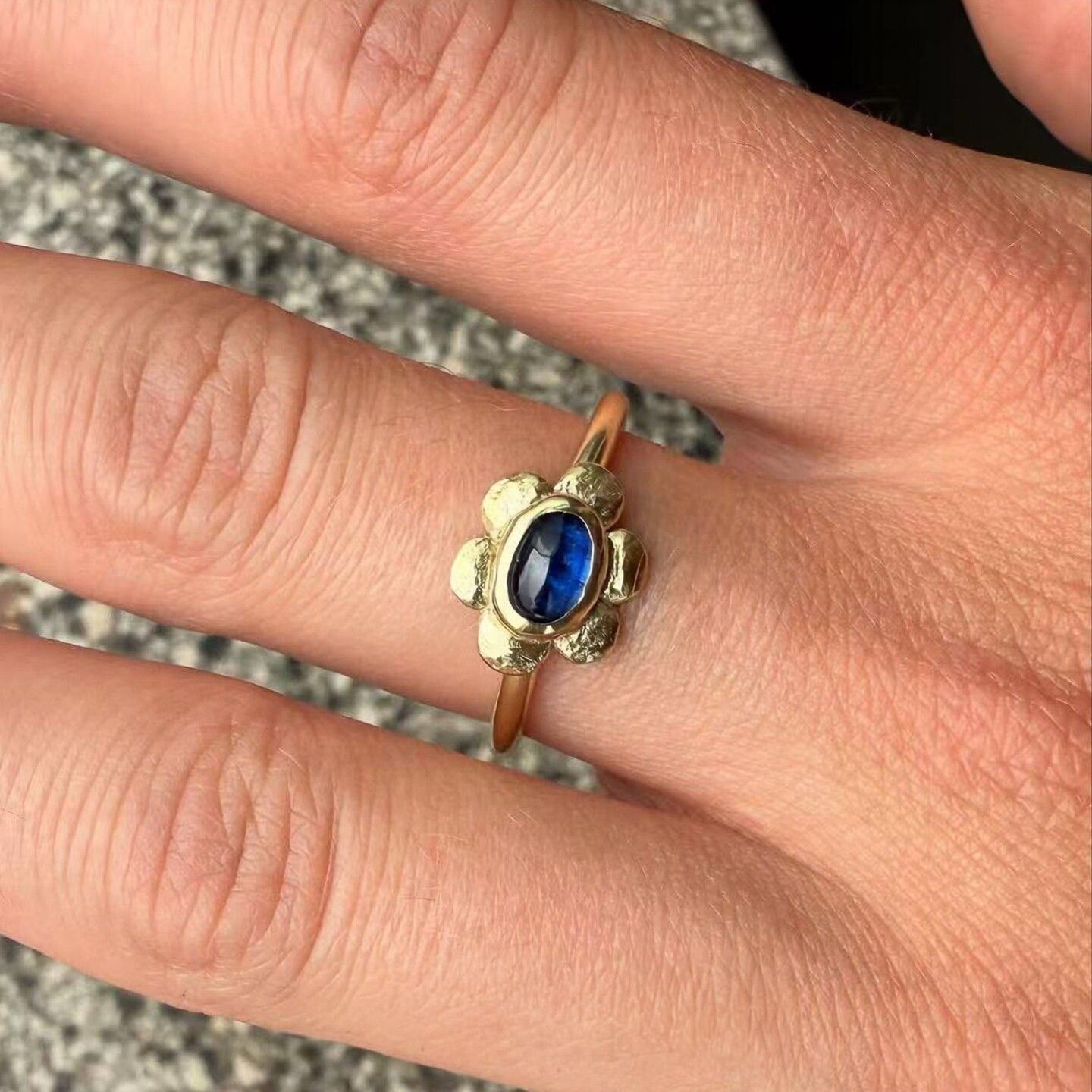 中古Vintage肌理感锤纹仿马眼钻蓝色花朵戒指轻奢百搭叠戴食指戒