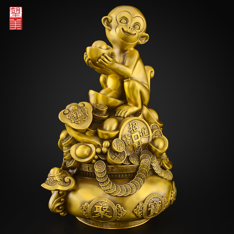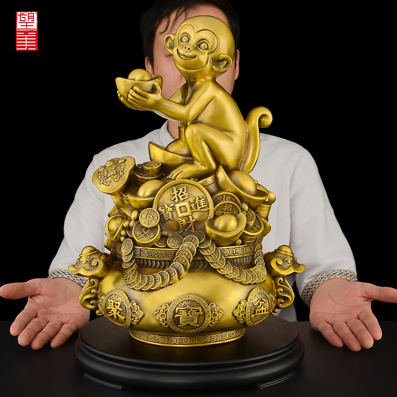 铜猴子摆件金属客厅聚宝盆猴办公室桌面如意鼠龙猴三合大号12生肖