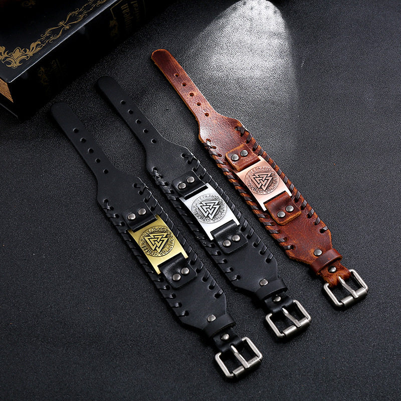跨境爆款饰品北欧复古维京图腾牛皮手链奥丁标记男士手链