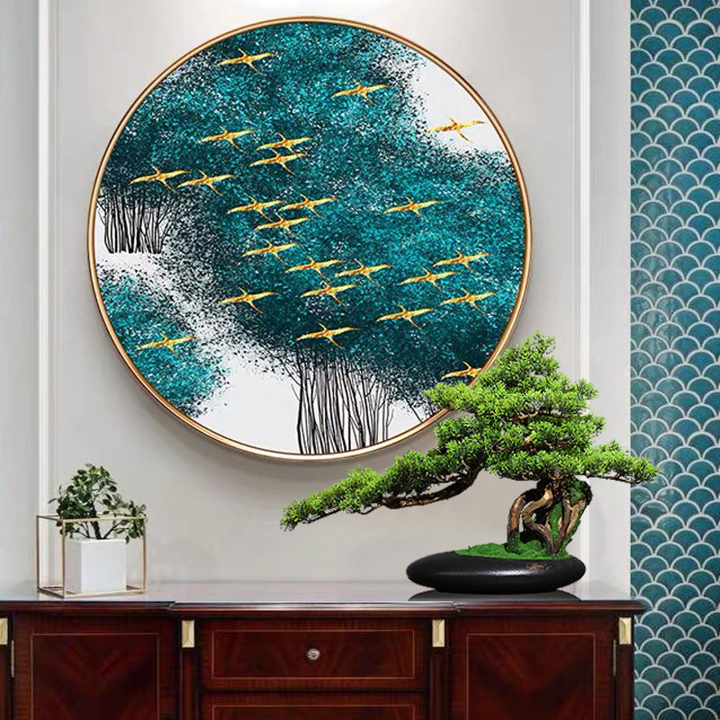 迎客松盆景新中式家居玄关室茶室花架仿真绿植装饰品