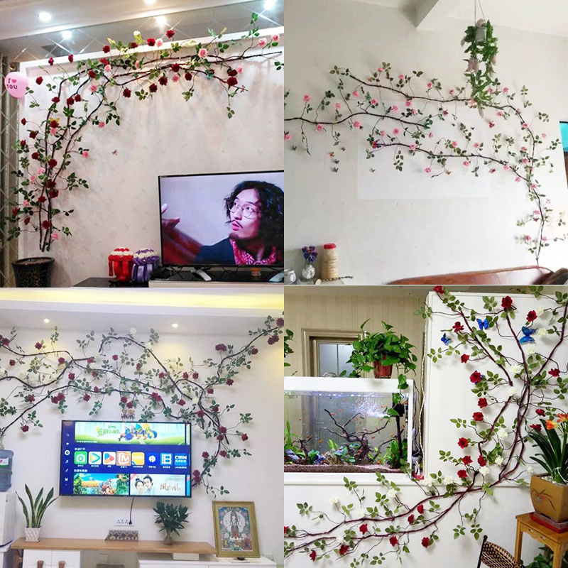 仿真玫瑰假花藤条室内客厅墙面空调管道遮挡装饰吊顶塑料藤蔓植物