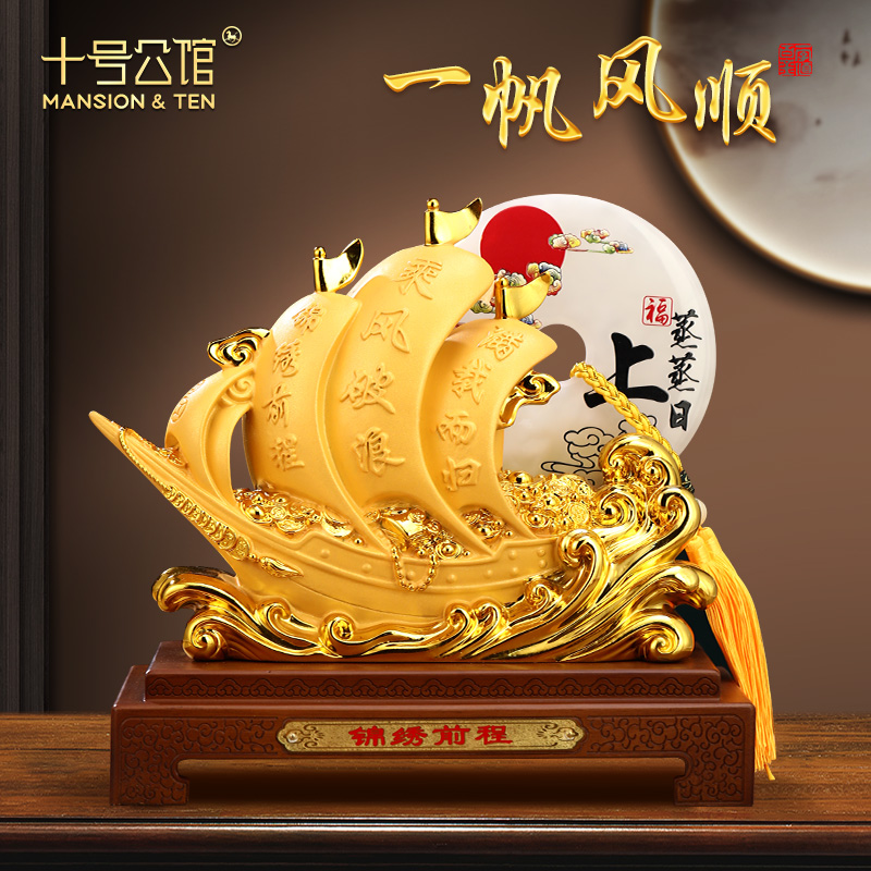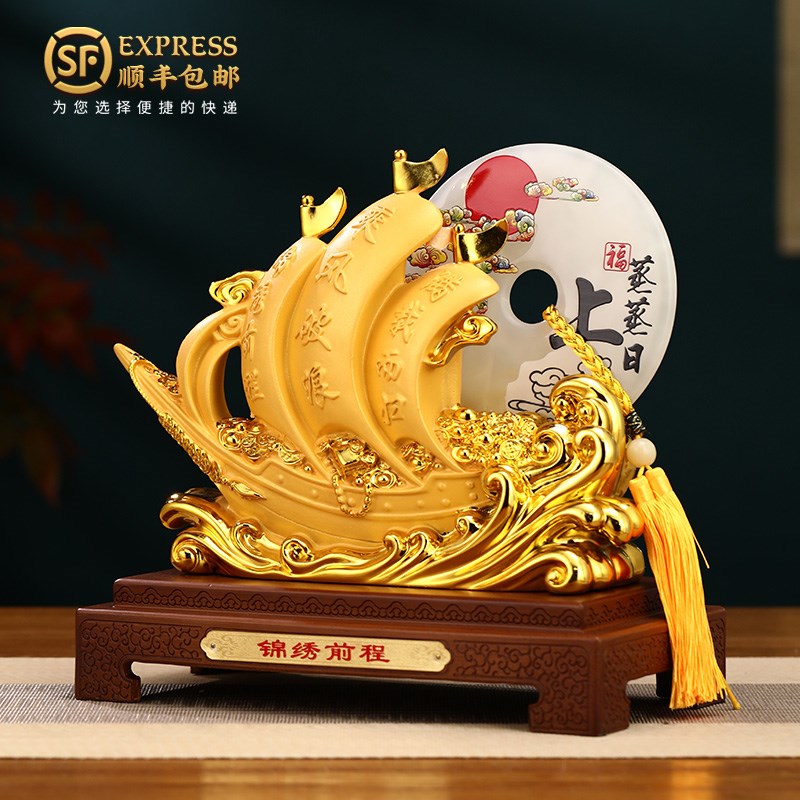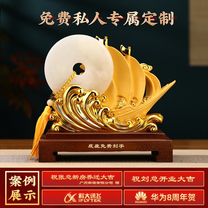 速发一帆风顺帆船玉石平安扣摆件办公室客厅玄关装饰品开业乔迁礼