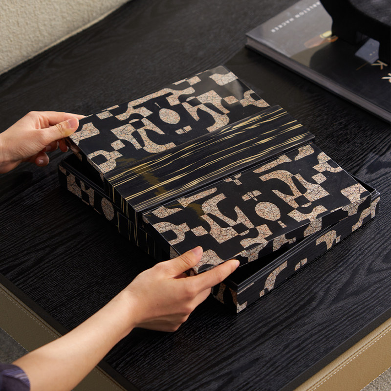 栖物Art中古风客厅茶几桌面创意罗马文拼图圆形托盘抽纸盒装饰品
