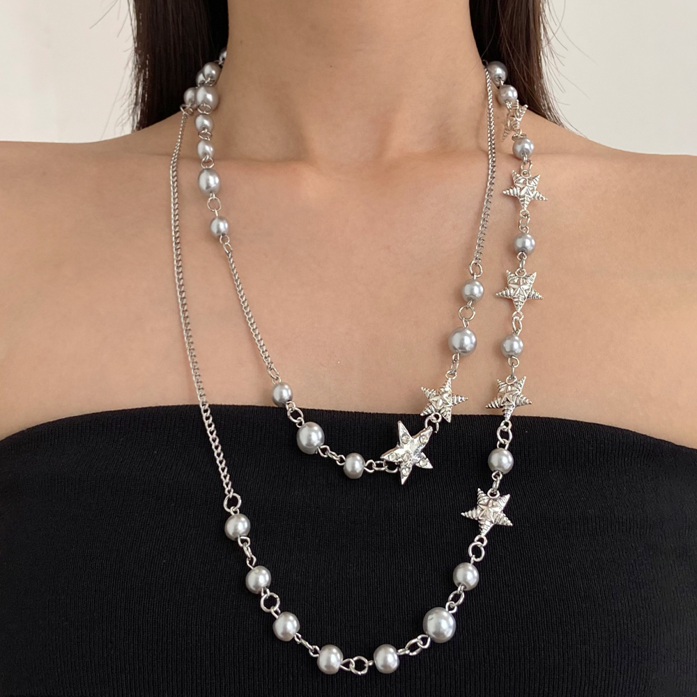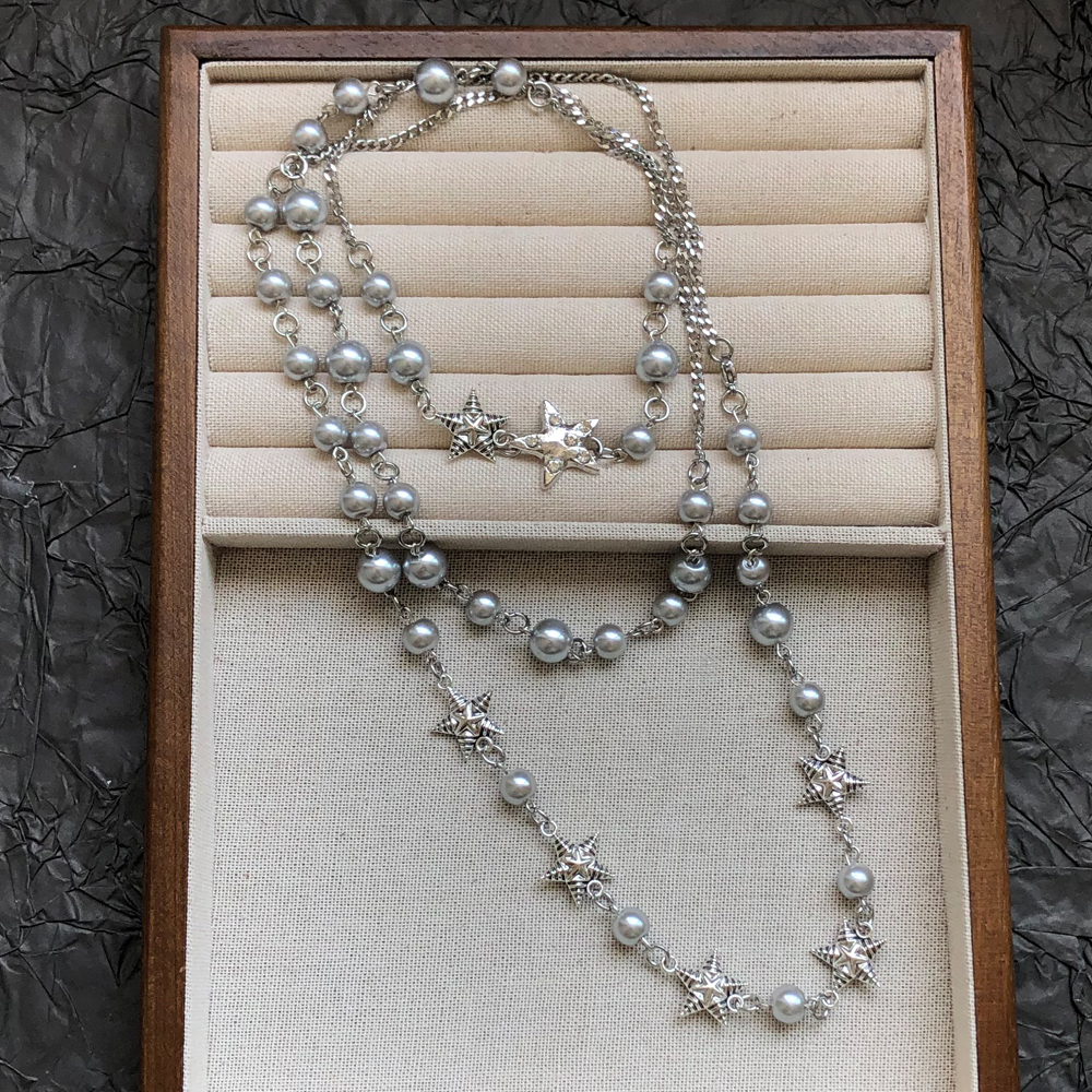 双层叠戴珍珠星星项链女长款轻奢高级感毛衣链小众设计挂脖配饰品