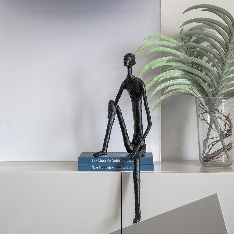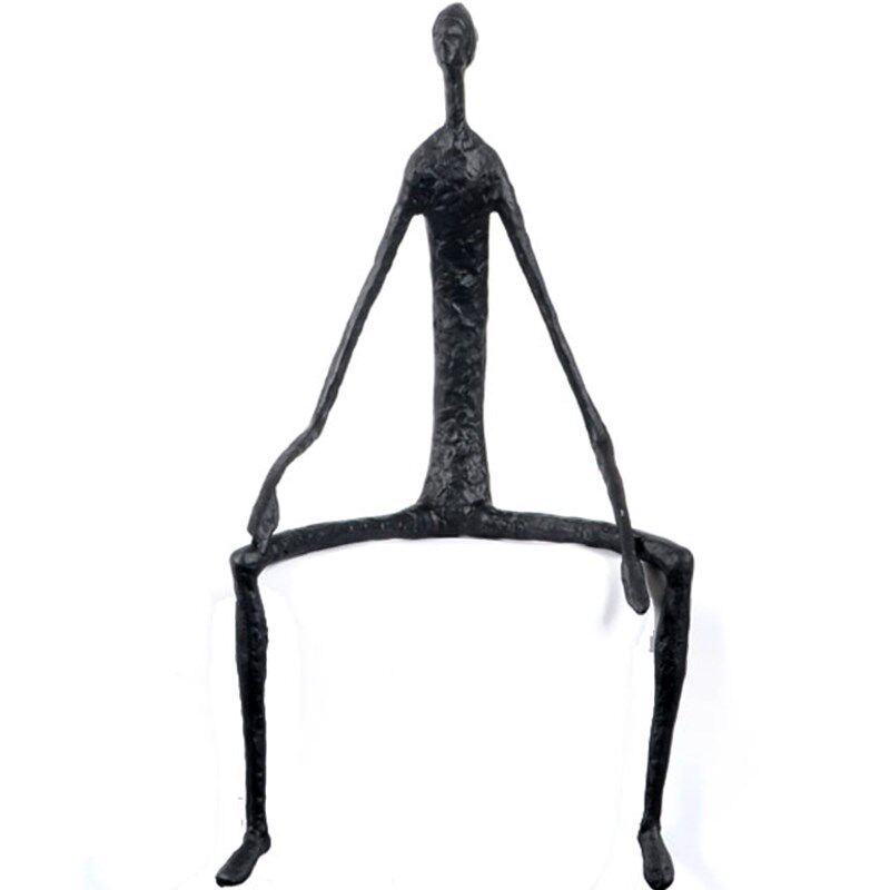 黑色火柴人物大摆件铸铁抽象雕塑坐姿玄关前台样板间现代金属饰品