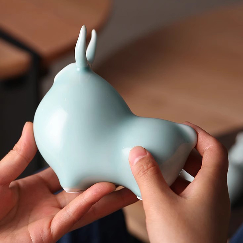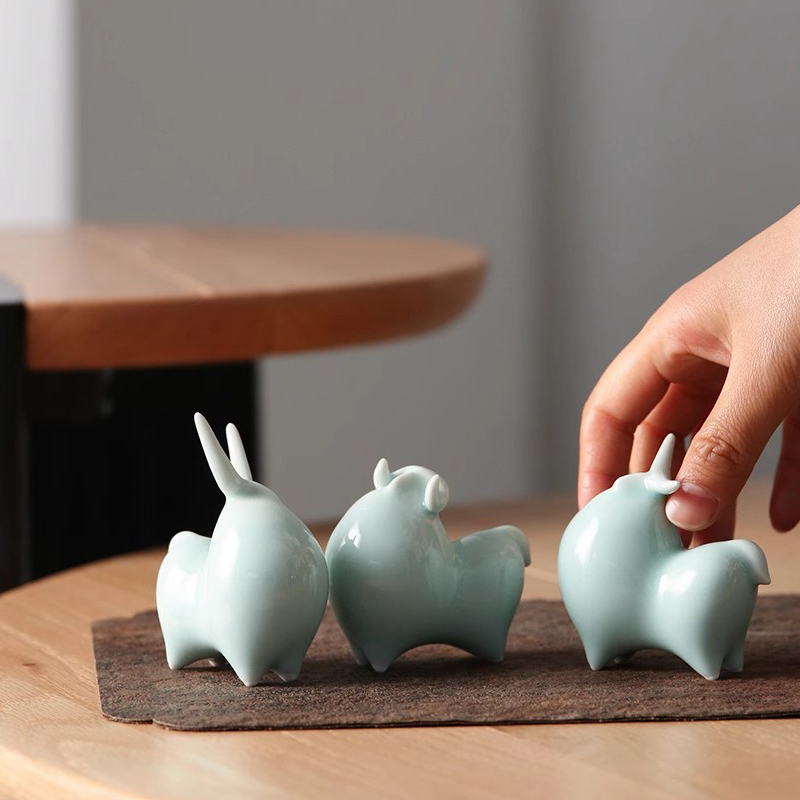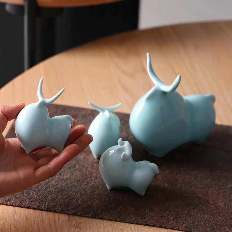 一家四口陶瓷生肖牛摆件创意招财吉祥物家居客厅办公室桌面礼品