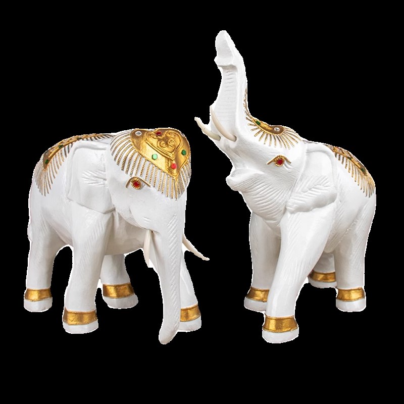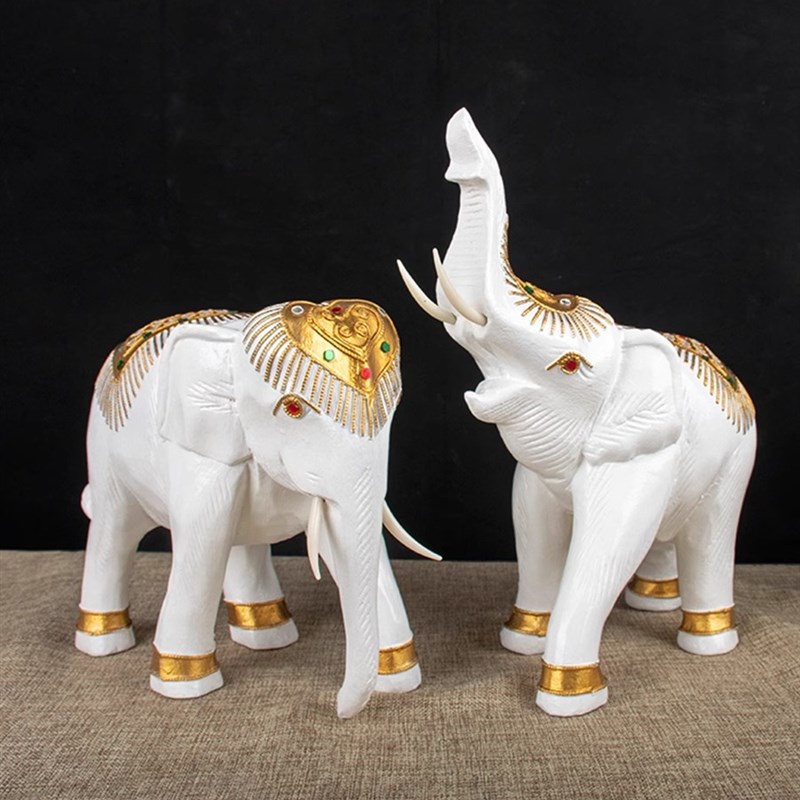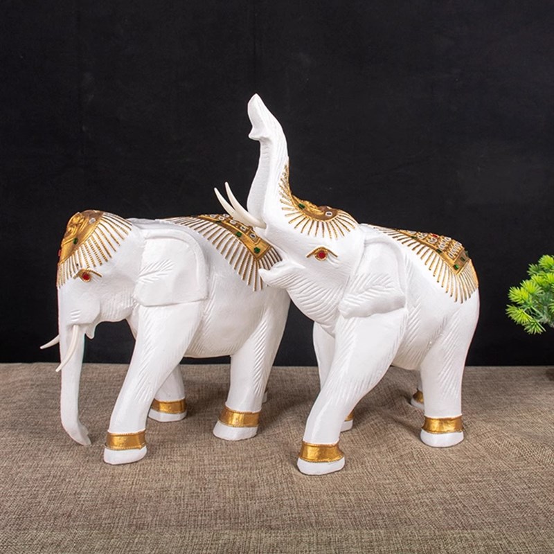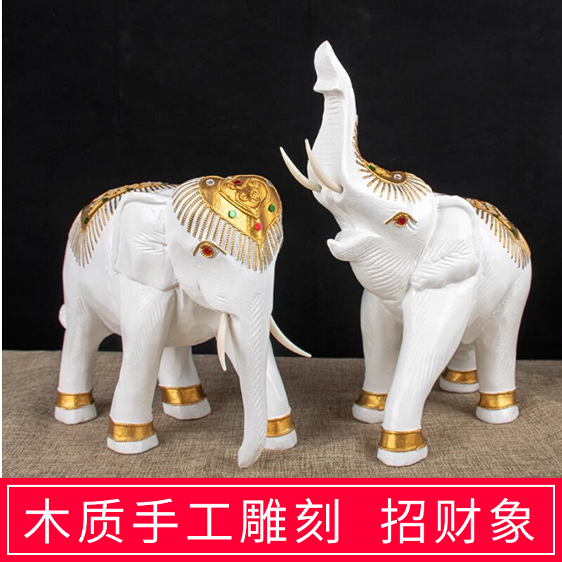 大象摆饰一对实木白色泰国工艺礼品摆饰招财吸水木雕东南亚风格装