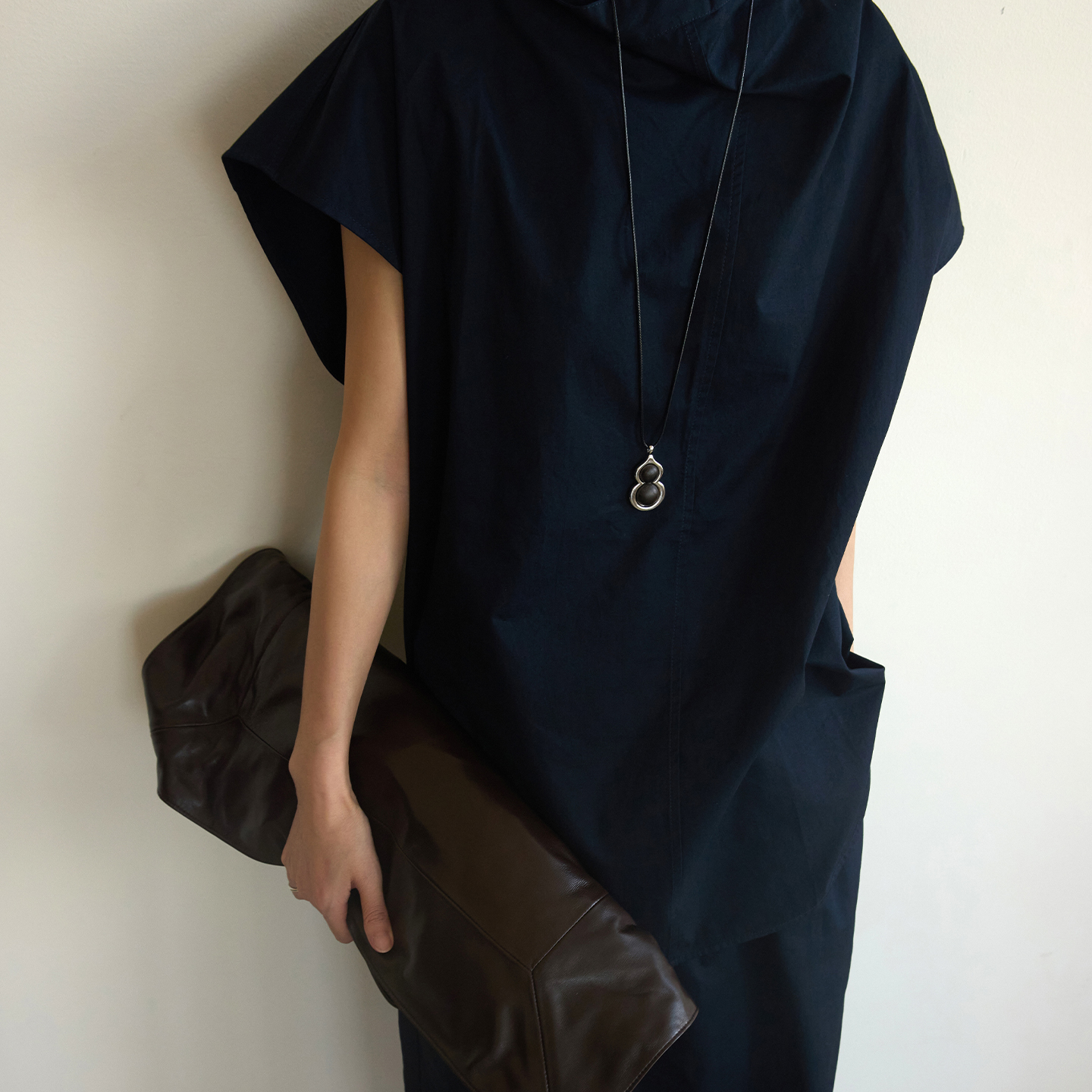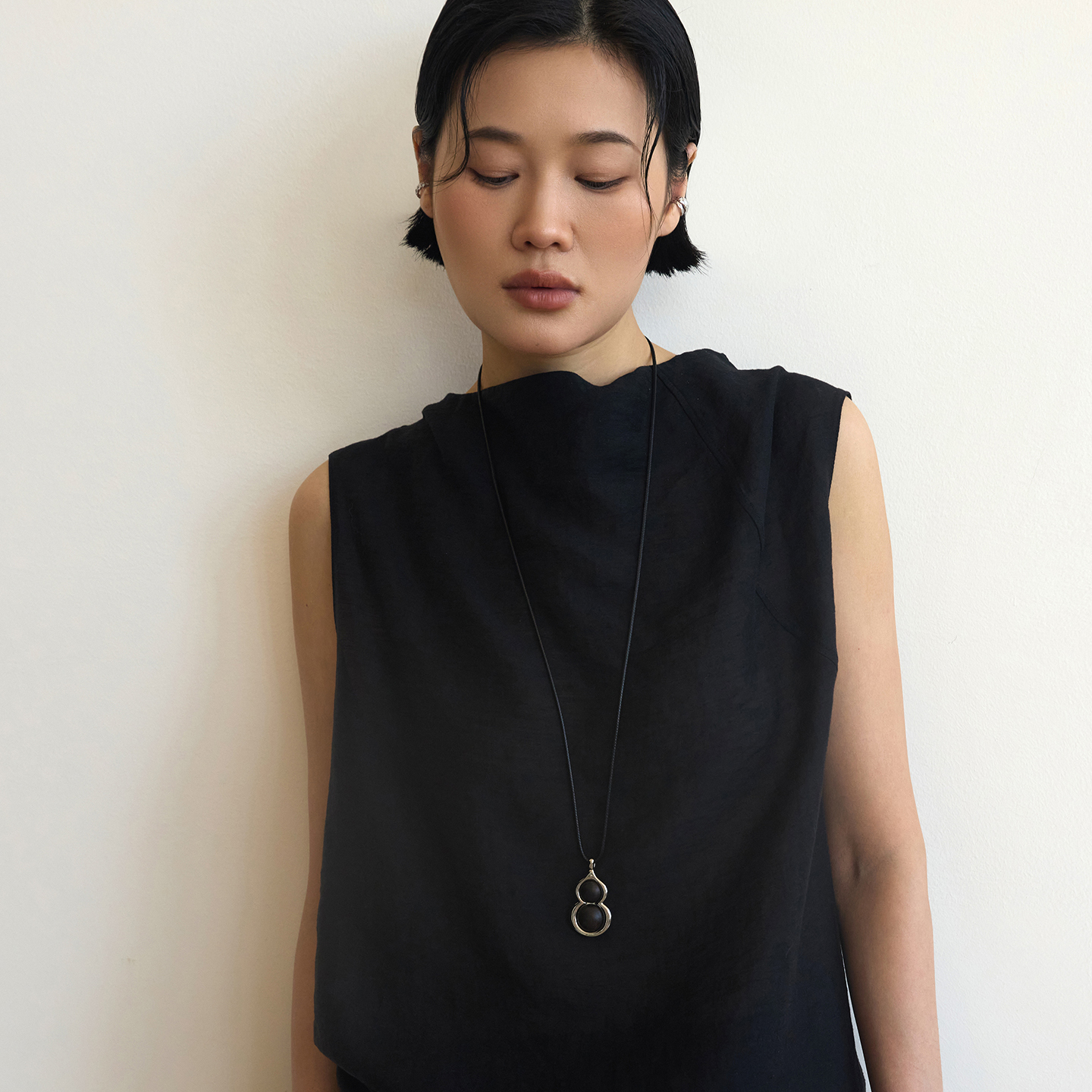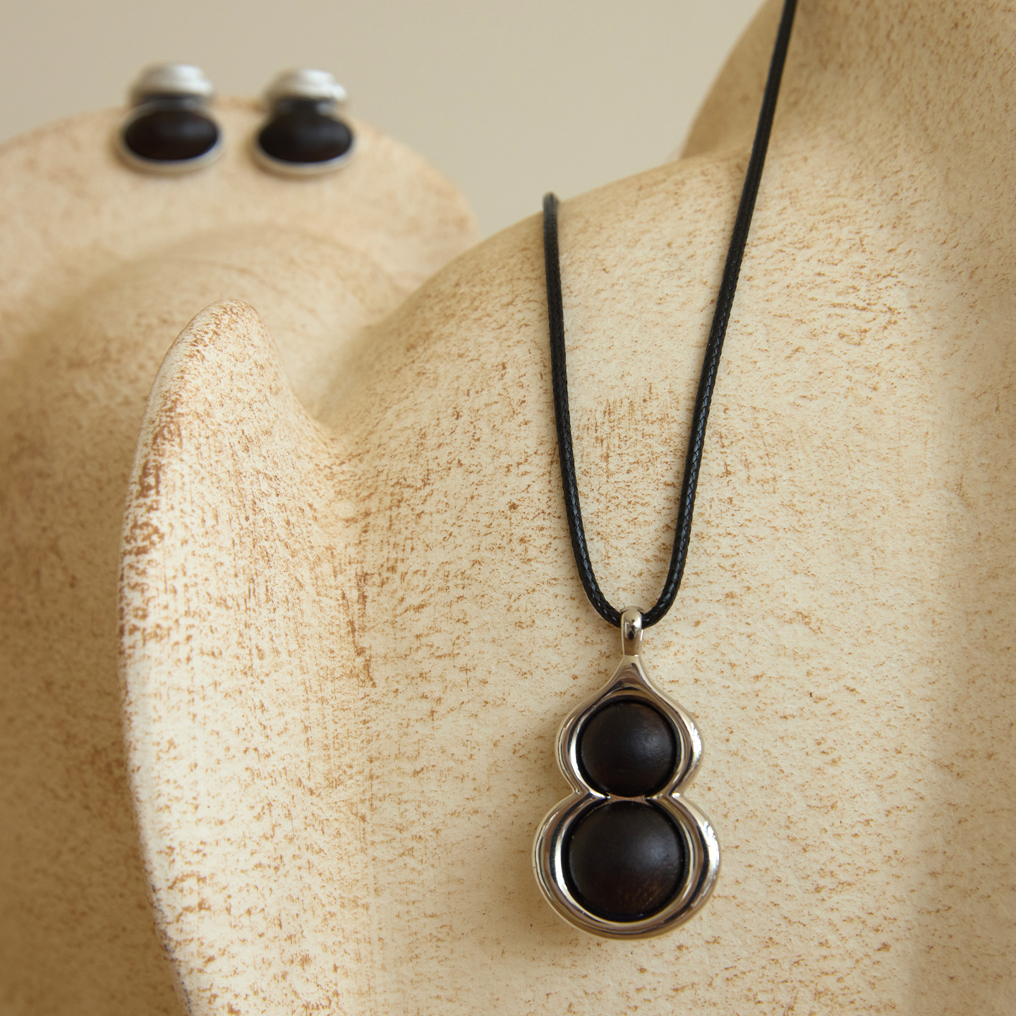 黑檀木葫芦项链女配饰长款高级感吊坠2025新款复古时尚皮绳毛衣链