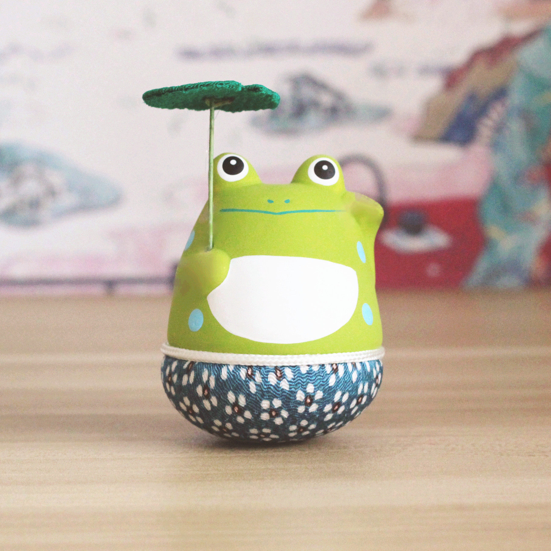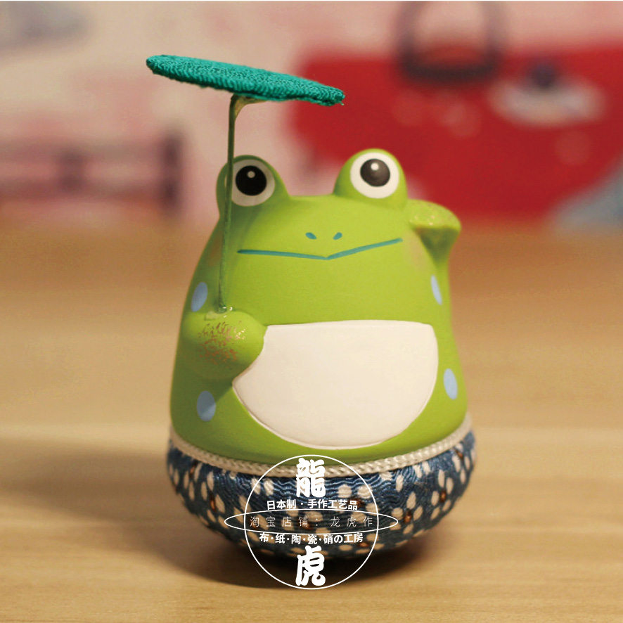龙虎作车载室内摆件不倒翁荷叶伞青蛙寓意满满送礼居家氛围摆放