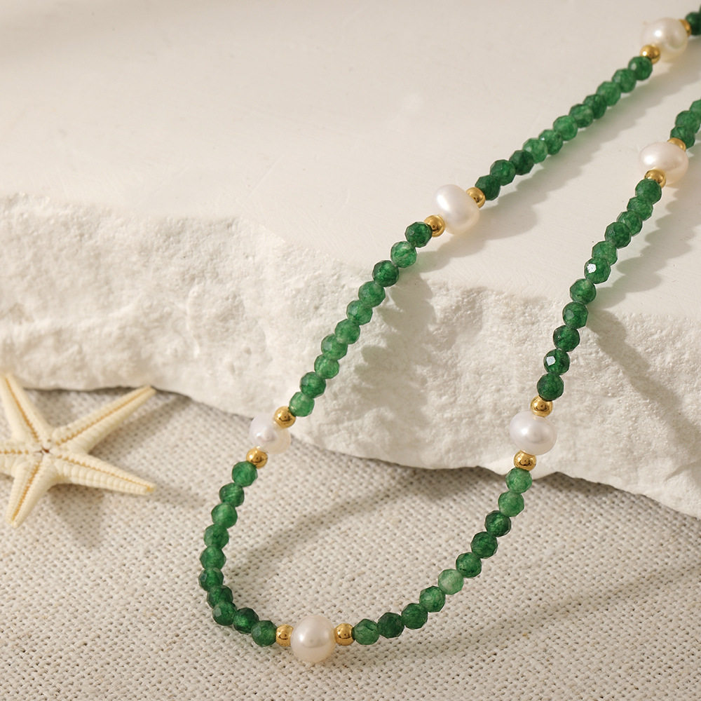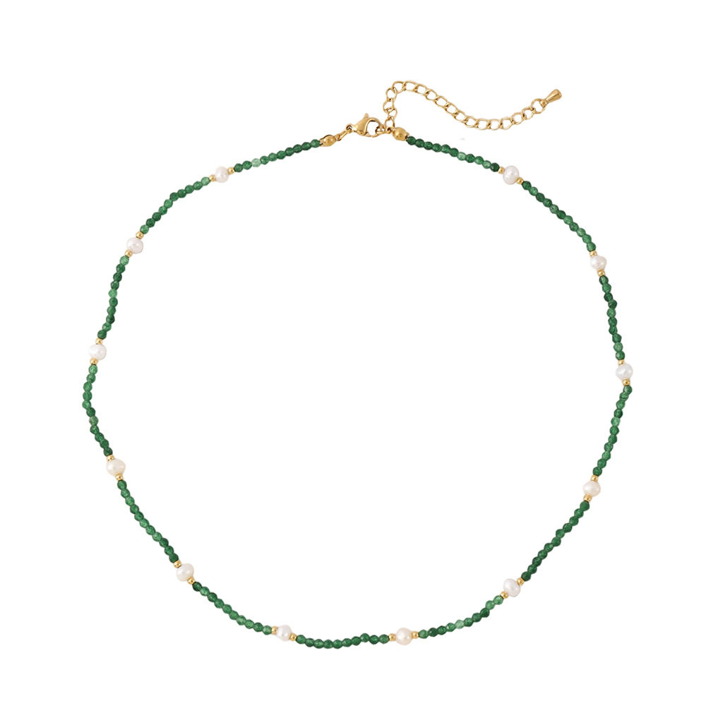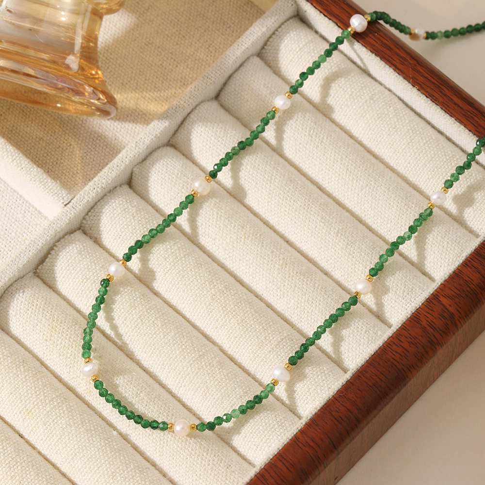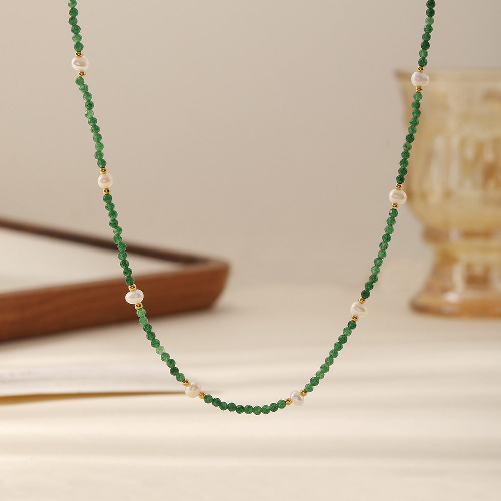 森系清新祖母绿珍珠项链小众高级绿色串珠choker温柔风显白锁骨链
