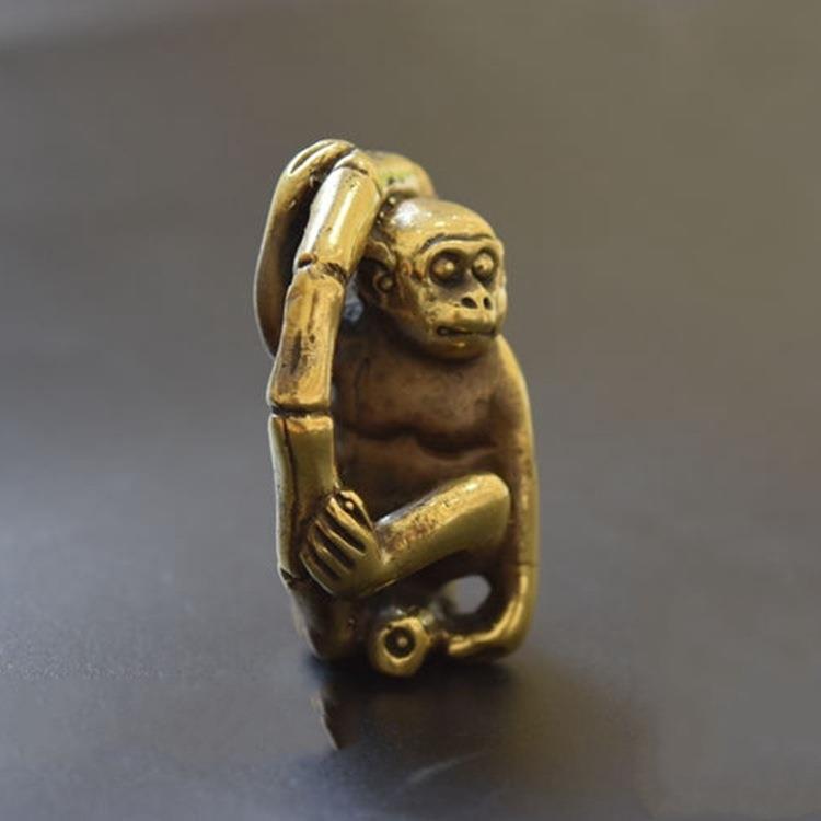 古董收藏品黄铜实心雕刻猴子滚环吊坠项链挂件老物件黄铜古玩杂项