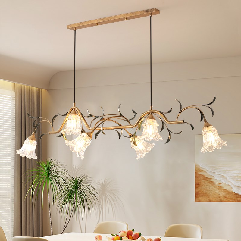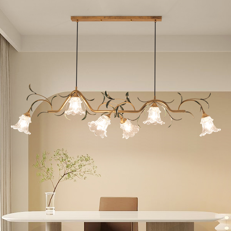 法式餐厅吊灯奶油风轻奢水晶吧台岛台吊灯美式复古创意饭厅长条灯